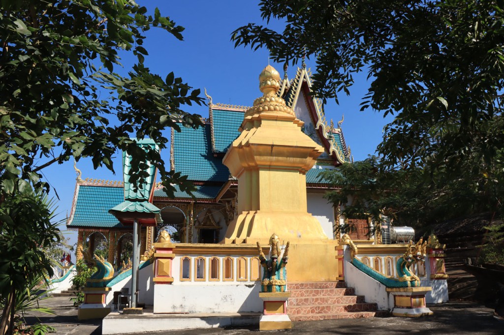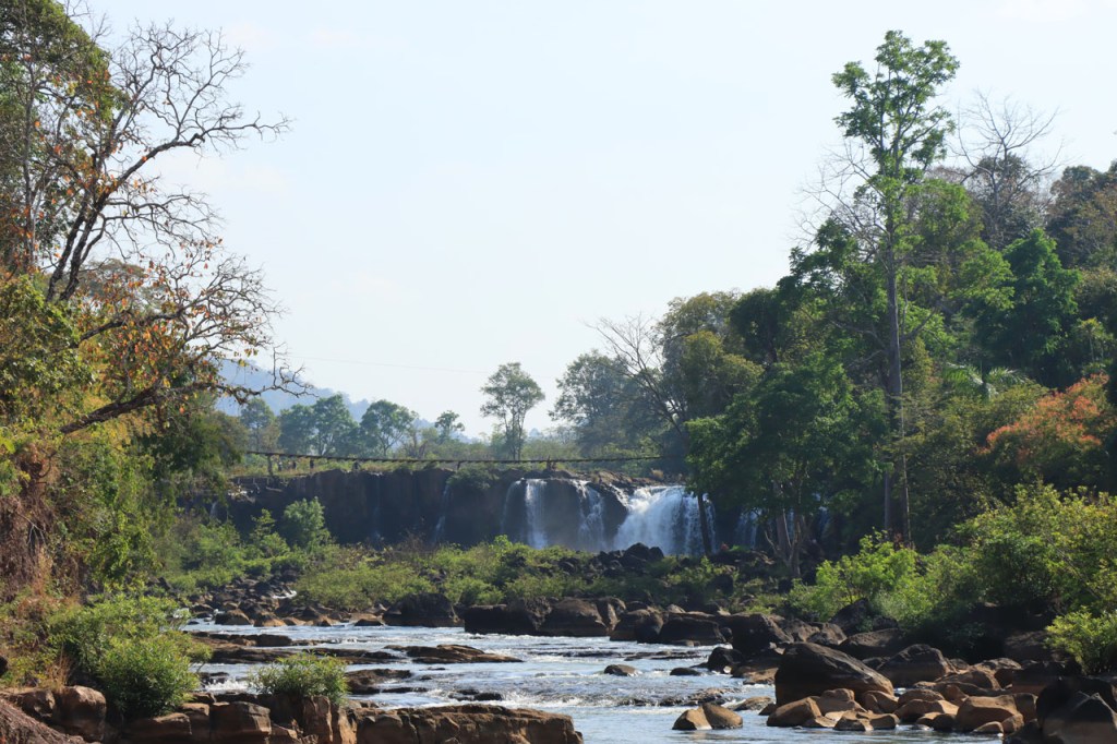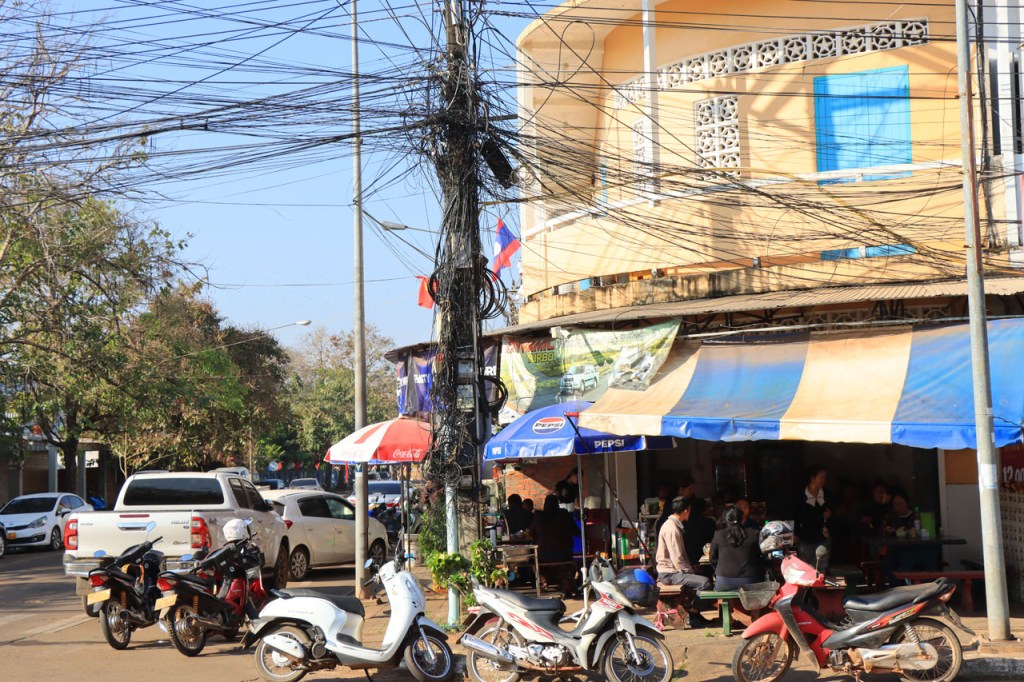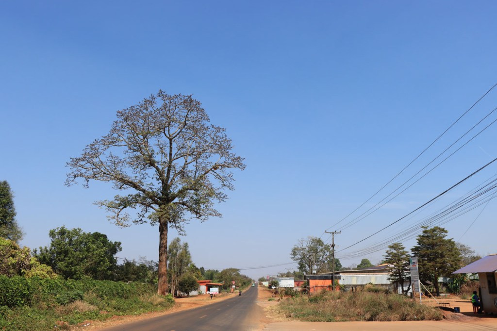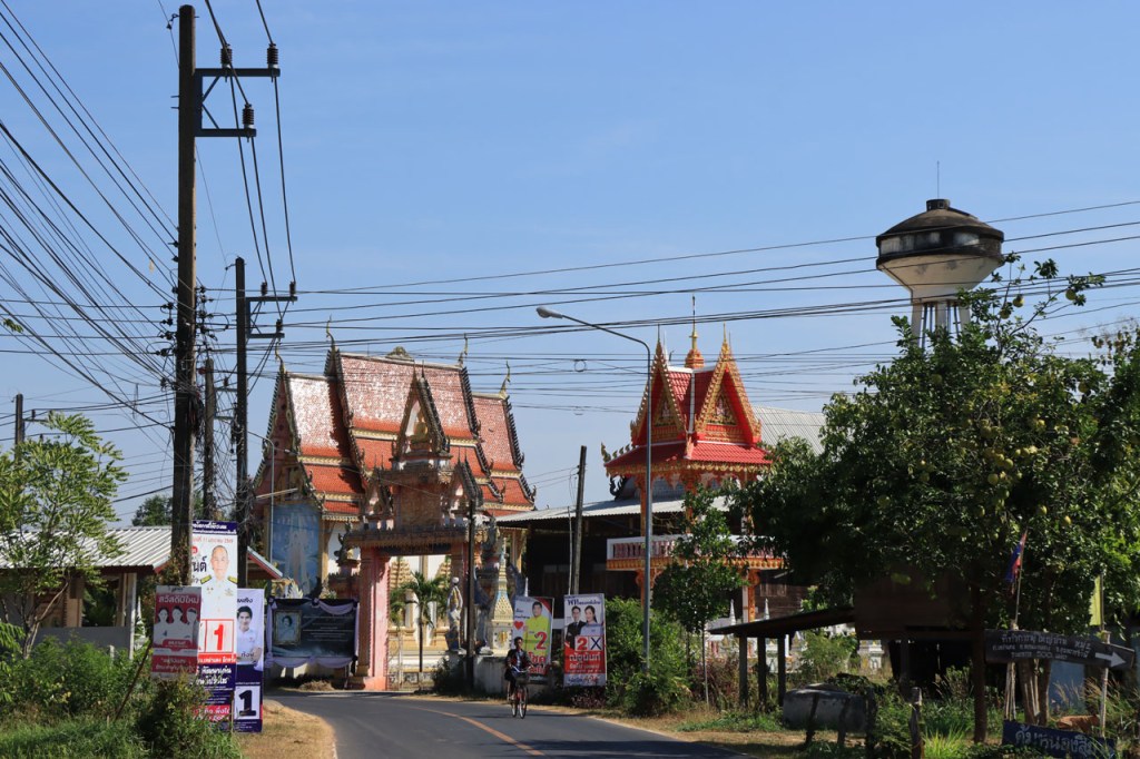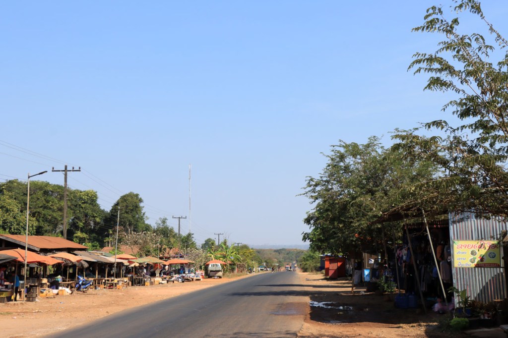 Ik zag vandaag nog 3 fietsreizigers, 2 bij het verlaten van Pakse en eentje verderop onderweg, en één lokale wielertoerist, warmpjes ingepakt op een mooie Trek. Ook kruiste ik verderop nog een georganiseerde fietstoer, eentje van de soort die ik vroeger ook wel deed. Verder passeerden mij veel witte mensen op scooters en dat is niet noodzakelijk goed nieuws als je bedenkt dat die waarschijnlijk allemaal naar hetzelfde doel gaan en je daar geen reservatie hebt. Er is daar echter een ruime keuze aan accommodatie in alle categorieën en er waren er ook wel zonder bagage, met de scooter is het waarschijnlijk wel te doen als daguitstap vanuit Pakse.