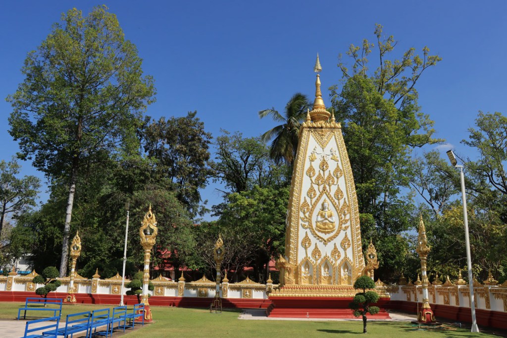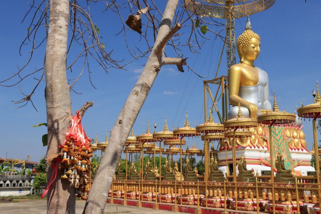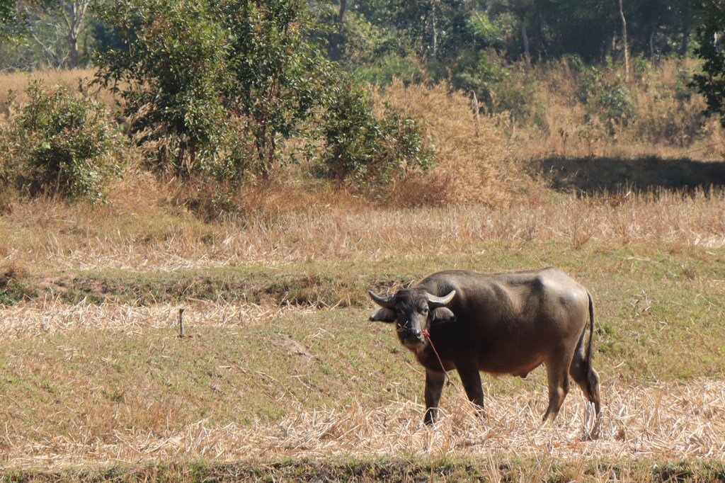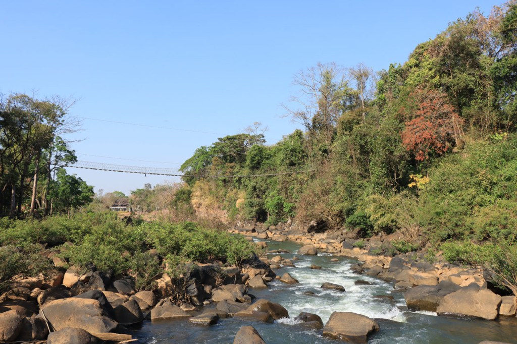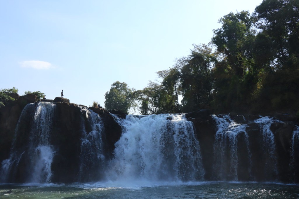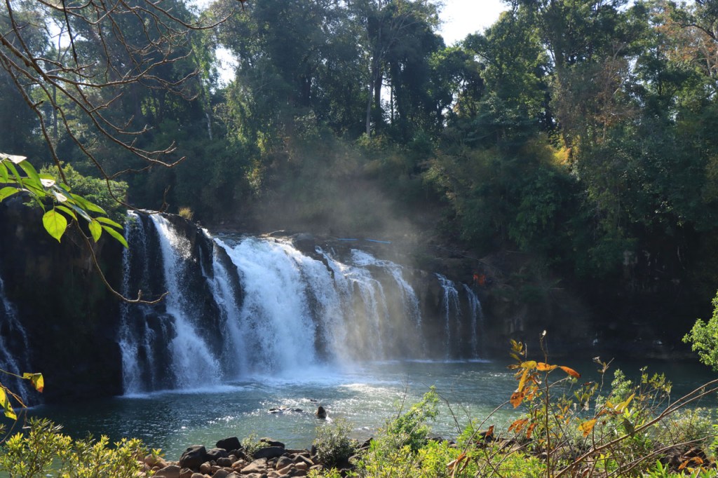 Ik zag vandaag nog 3 fietsreizigers, 2 bij het verlaten van Pakse en eentje verderop onderweg, en één lokale wielertoerist, warmpjes ingepakt op een mooie Trek. Ook kruiste ik verderop nog een georganiseerde fietstoer, eentje van de soort die ik vroeger ook wel deed. Verder passeerden mij veel witte mensen op scooters en dat is niet noodzakelijk goed nieuws als je bedenkt dat die waarschijnlijk allemaal naar hetzelfde doel gaan en je daar geen reservatie hebt. Er is daar echter een ruime keuze aan accommodatie in alle categorieën en er waren er ook wel zonder bagage, met de scooter is het waarschijnlijk wel te doen als daguitstap vanuit Pakse.