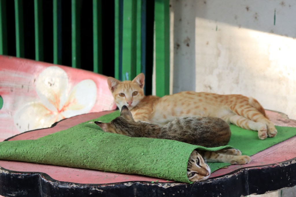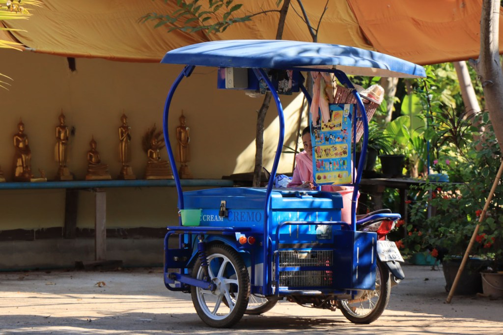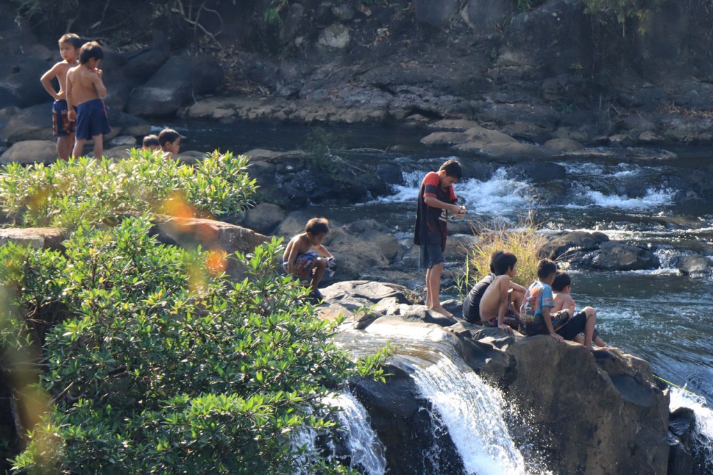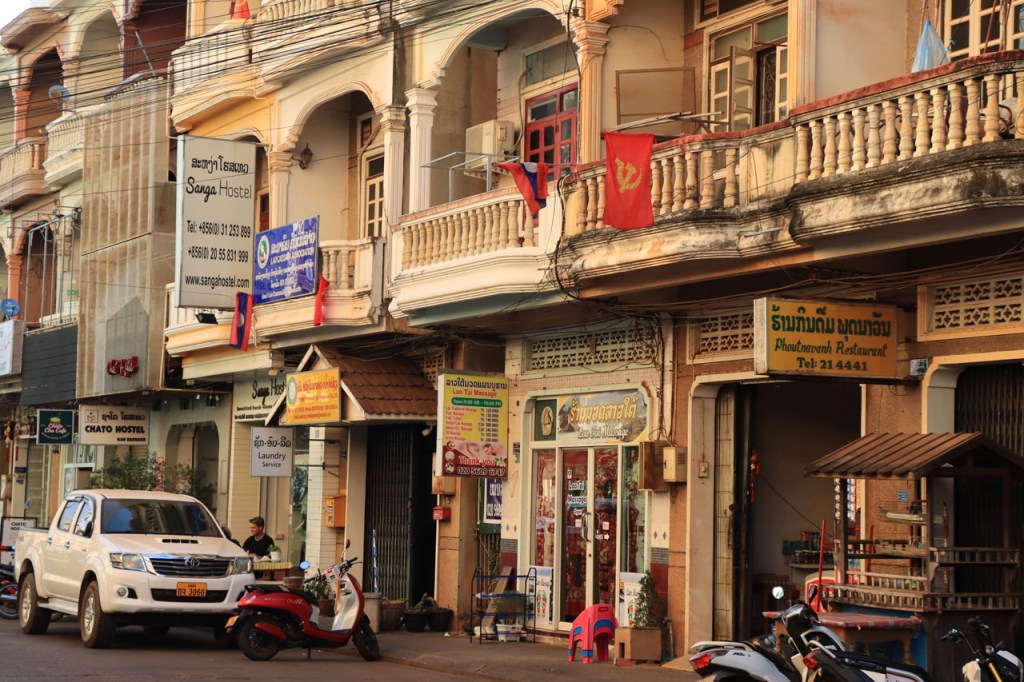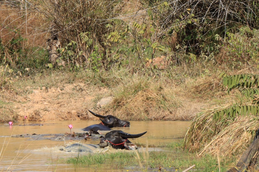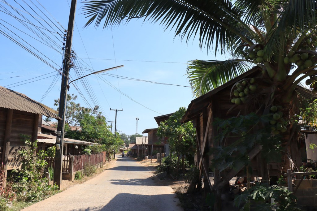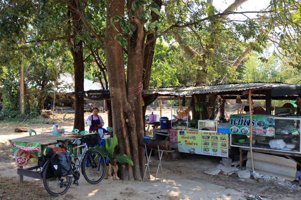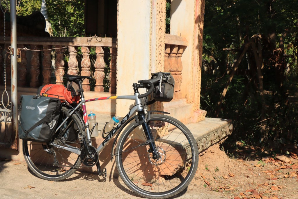 Met 28€ is mijn verblijf hier pokkeduur, naar lokale standaard 😉 , maar locatie is alles 🙂 . Ik was hier overigens al wel eens eerder, in dezelfde lodge, 22 jaar geleden bij mijn eerste Laos reis maar dat was met zo’n georganiseerde rondreis. De bungalows hebben waarschijnlijk ondertussen al wel eens een opknapbeurt gehad 😉 , ze zijn nog steeds dik in orde. Er staan hier bij nog 2 bungalowtjes fiets(en) op het balkon, mountainbikes, ik ben dus schijnbaar ook hier niet de enige fietser.