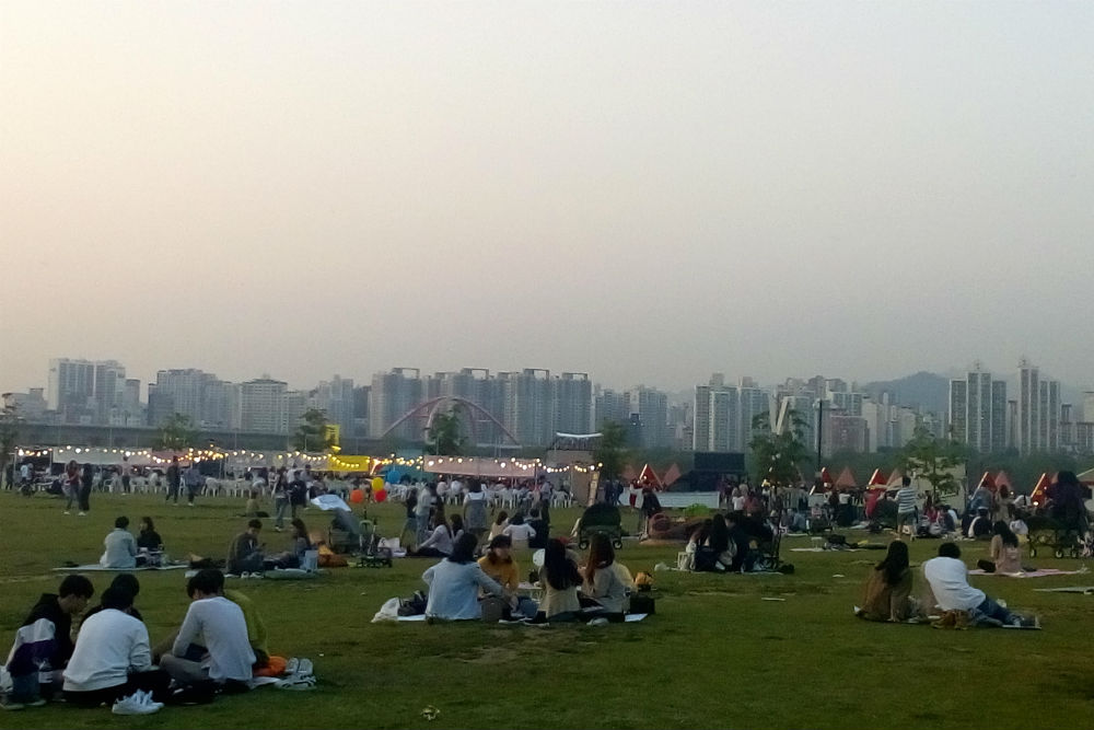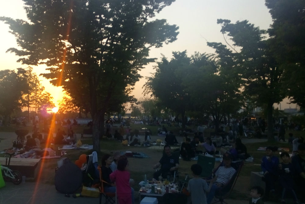 Toch nog een laatste berichtje uit Korea. Ik ben gisteren voor het eten nog even langs het water gewandeld. Ik had bij mijn aankomst op donderdag al gemerkt dat daar precies wat aan het opbouwen was maar was er nog niet toe gekomen om er eens langs te gaan, tot gisteren dus. Het was er inderdaad gezellig druk. Ik ben dan gaan eten bij mijn vaste Vietnamees van de afgelopen dagen, het eten was er goed en ik kon er vertrouwen op mijn kredietkaart, maar ben daarna nog een tijdje terug gegaan. Het was een leuke afsluiter van de reis. Ik had enkel mijn telefoon mee dus de foto’s zijn misschien wat minder maar ze geven wel de sfeer weer.