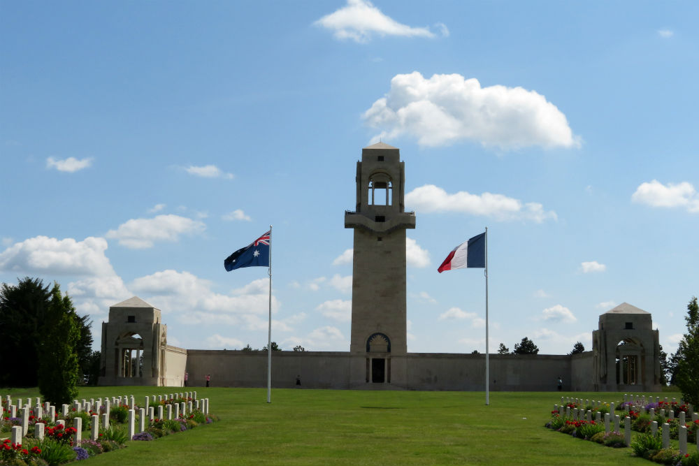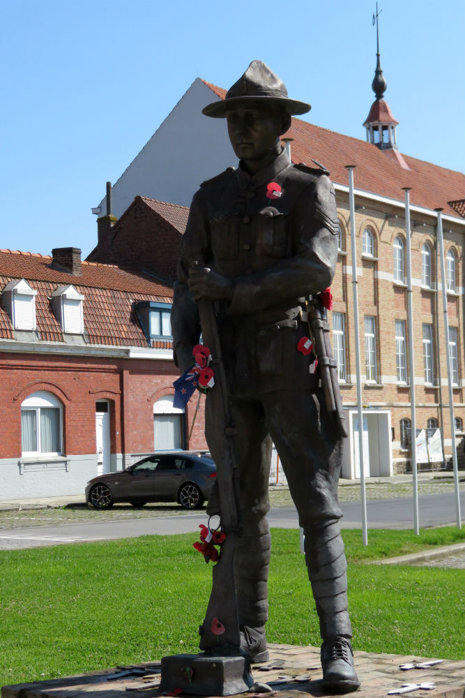 Ik heb vandaag mijn rit verder gezet in westelijke richting maar eerst heb ik nog even rondgekeken in Albert en ineens ook mijn inkopen gedaan, je weet nooit of je nog wel iets tegenkomt. Gisteren kwam ik bijvoorbeeld niets tegen en heb ik één van mijn “noodrantsoenen” moeten aanspreken. Ik heb vier van die “trekking maaltijden” mee voor het geval dat ik eens niet aan inkopen toe kom, zoals gisteren dus. Voor zover ik al gezien heb zijn de supermarkten zondags voormiddag wel open maar ik passeerde er dus geen. Van Albert ging het dan naar Corbie. Daar heb ik ook even rondgekeken en heb daarna nog even uitgeweken voor een laatste oorlogsmonument, het Australian National Monument. Zij sloegen op deze plek in april 1918 definitief de laatste Duitse aanval af, dit was dus zowat het keerpunt. Voor dat monument moest ik ook nog eens een laatste heuvel op. Militair technisch logisch natuurlijk, een aanval sla je best af boven op een heuvel en niet beneden.
