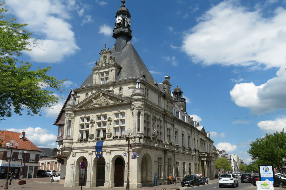 Eindigen deed ik in Péronne. Aangezien het een kortere rit was, was ik hier vrij vroeg. Ik dacht eigenlijk om eerst het stadje te bekijken maar passeerde langs de camping en ben daar dan toch eerst maar eens gaan zien. Het is weer een “Municipale” maar gelukkig met ruimere openingsuren van de receptie, ik kon er direct terecht terwijl ik gisteren nog 10 minuten moest wachten tot 4 uur. Ze is wel wat minder rustig dan die van gisteren, het is duidelijk dat Péronne toeristischer is dan Tortequesne. Ik ben na mijn installatie even verder naar het stadje gewandeld. Péronne is een plaats met duidelijk een groot verleden, met oude poorten, ommuring en kasteel. Maar het is vooral een belangrijke plaats in het slagveld, en dus het oorlogstoerisme, van de Somme.