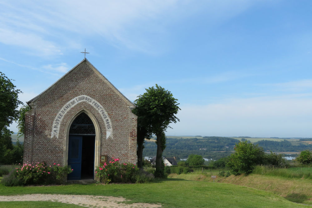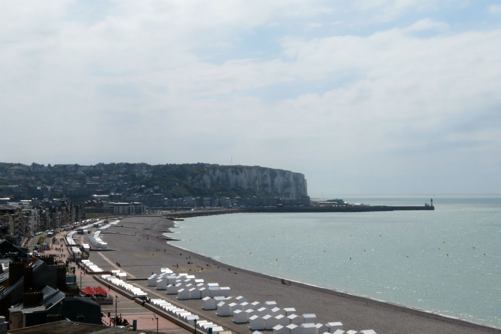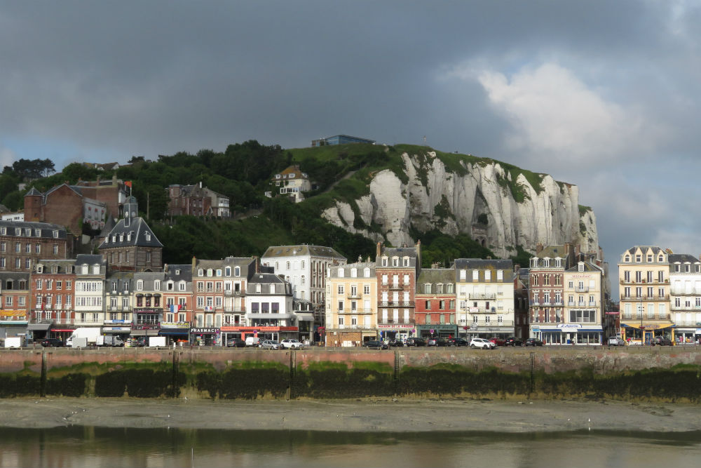 Even voor aankomst begon het weer te rommelen en te regenen maar het bleek verder land inwaarts te waaien, bij aankomst was het terug zonnig. Eigenlijk kwam ik niet aan in Le Treport maar in Mers les Bains, een voorstadje van Le Treport. Mijn camping is er mooi gelegen, boven op een klif, met o.a. een mooi uitzicht over Le Treport. Je vind hier ook nog een stuk “Atlantic Wall” terug. Op een stukje ervan hebben ze een oud Maria beeld van 1878 terug opgetrokken. Tijdens de oorlog kwamen vrouwen hier treuren om hun mannen. Daarom was het beeld verwijderd moeten worden van de Duitsers. Na de oorlog hebben ze dus terug opgericht op de klif en dan wel op een stukje oorlogsgeschiedenis. De camping is OK maar het sanitair is wel een beetje voorbij gestreefd en ook hier hebben ze weer geen wifi.