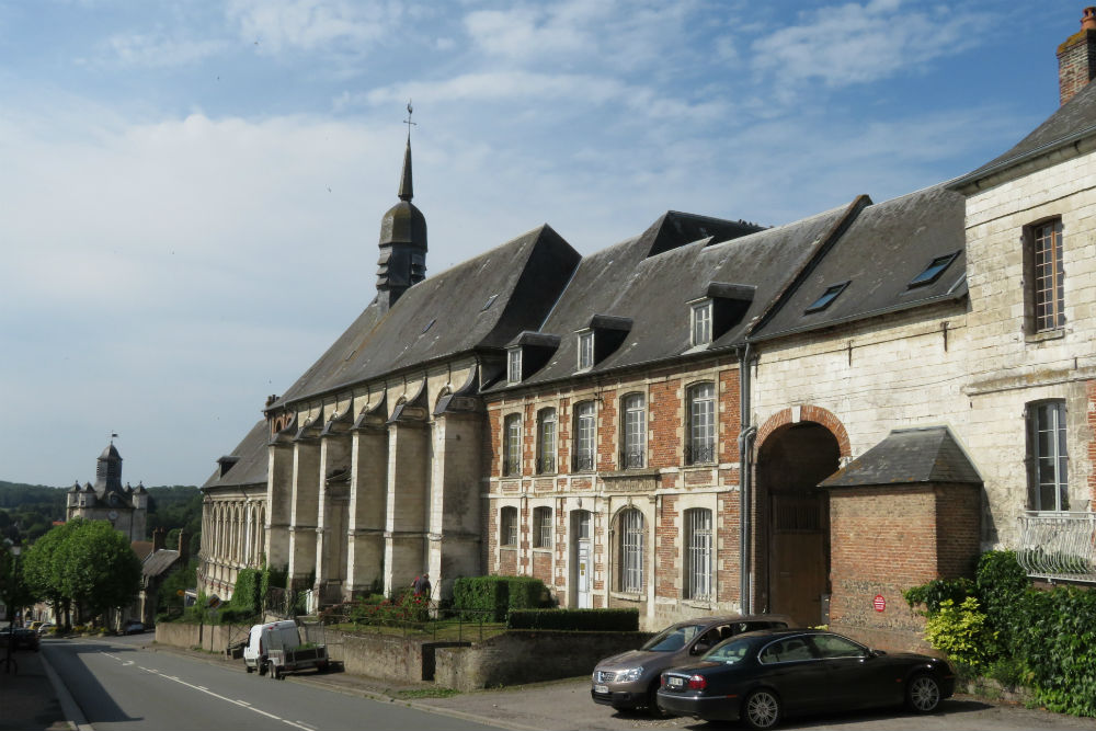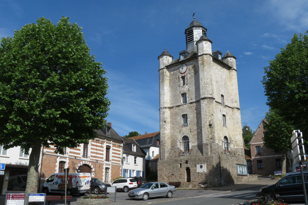 Vanmorgen even langs Le Treport gereden maar bezocht heb ik het niet. Ik keek op een stadsplan langs de weg en het leek me nogal ingewikkeld, dus ben ik maar meteen doorgereden. Achteraf gezien had ik nog wel een beetje meer stadwaarts moeten gaan, dan had ik geen stuk over de grote baan moeten rondrijden. Ik liet vandaag de kust weer even voor wat ze is en ging dus land inwaarts. Daar mocht weer behoorlijk bij geklommen worden, geen hoge of steile dingen maar lange golvende heuvels tussen de velden en weiden met af en toe een dorp of een bos. Ik houd wel van die grote vlaktes, in het hoge noorden of de Engelse Moors. Als ze, zoals hier, gecultiveerd zijn dan is het toch wat minder. Al hebben die grote graanvlaktes ook wel iets natuurlijk. Het laatste gedeelte ging het ook al eens meer door het bos.