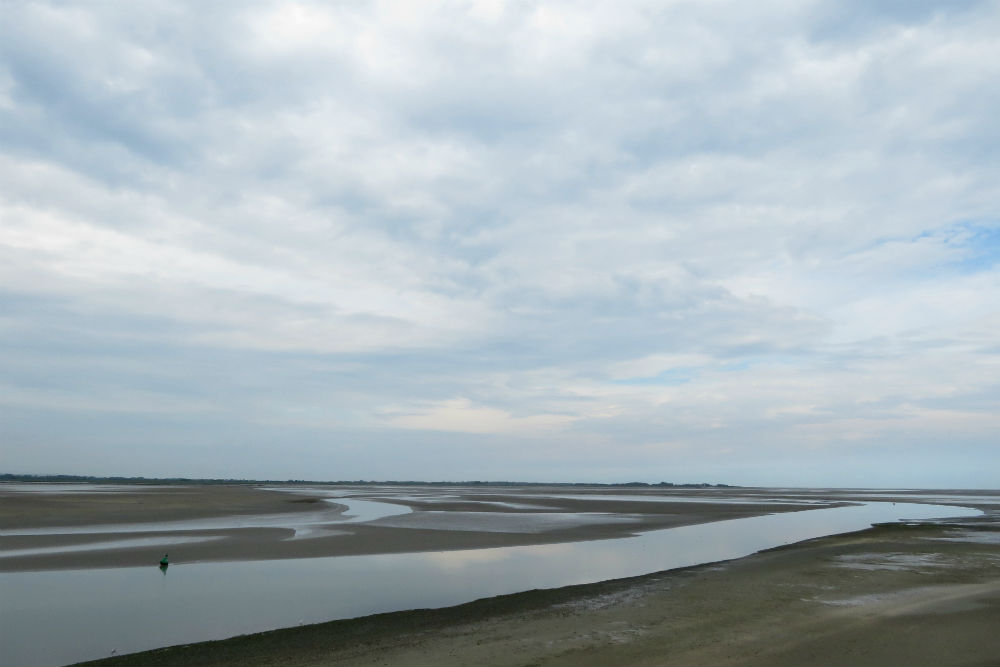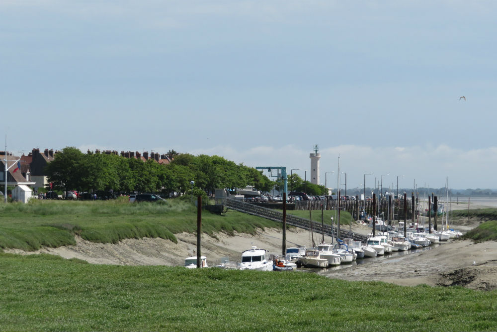Voor mijn rit was het echter wel terug prettig weer. Ik fietste vandaag rond de Baai van de Somme. In Le Crotoy ben ik natuurlijk eerst even rondgefietst om het te bekijken, wat wel wat bemoeilijkt werd omdat ze schijnbaar in het hele stadje de weg aan het vernieuwen zijn. Daarna ging het langs de grote weg rond de baai maar er was wel een degelijk, afgezonderd fietspad. In St-Valery fietste ik ook even rond de oude stad, leuk om zien maar niet meer dan dat. Aan de vuurtoren van Le Hourdel zag je dan eigenlijk de Somme in zee stromen, of eigenlijk momenteel de zee in de Somme. Je zag duidelijk de opkomende vloed in de rivier stromen. Bij de vuurtoren lag ook een vissersboot, half op het droge, te wachten op het opkomende water om te kunnen uitvaren. Een uurtje later en de baai ziet er waarschijnlijk helemaal anders uit. Van Le Hourdel ging ik verder over het fietspad achter de duinen, het werd wel even lastiger vanwege de zeewind daar. Nog wat later werd het nog even wat lastiger toen ik vast stelde dat ze hier ook kliffen hebben, het is waarschijnlijk hier dat Engeland van het vaste land is afgescheurd 😉