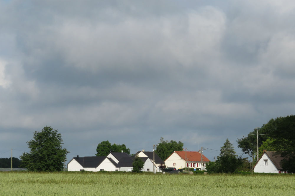 Zo mooi en warm het gisteren was, zo kil en grijs was het vanmorgen. In de voormiddag kwamen er wel mooie opklaringen maar op de middag zag ik in de verte buien vallen en deed ik alvast mijn schoenovertrekken aan. De buien trokken echter voorbij en een eind verder mochten de overtrekken terug uit. Net bij het binnenrijden van Albert viel er dan toch wat regen maar toen ik uiteindelijk op de camping aankwam stopte het alweer en klaarde terug op.