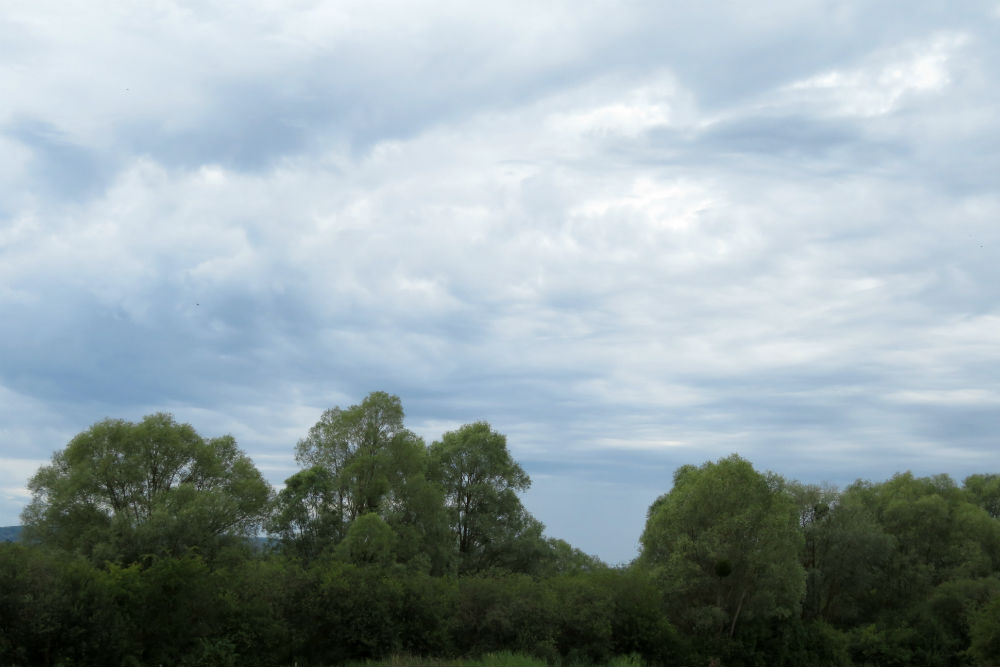 Aan het Lac de Madine nam ik de wandel- fietsweg, die onverhard was. Even dacht ik nog dat ik beter een paar kilometer meer langs de baan gevolgd had maar uiteindelijk bleek het toch een mooi natuur gebied te zijn. Ondertussen werden de wolken wel snel veel ruwer en zag het er niet goed uit voor de namiddag. Korte tijd later viel ook al de eerste bui. Een kort eindje verder ging ik naar de supermarkt en toen ik buiten kwam was de regen voorbij en scheen zowaar de zon. Ik werd in de namiddag natter van het zweet dan van de regen. Ik schuilde nog even bij Maria in de schaduw alvorens de laatste 10 Km aan te vatten maar toen ik op de camping aankwam verschenen er alweer terug donkere wolken.