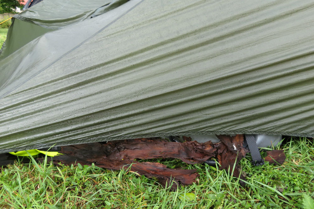 De hele dag heeft het geregeld gedreigd met donkere wolken maar vandaag hebben ze gewacht tot net na dat ik mijn tentje opgesteld had om met de eerste bui te komen.