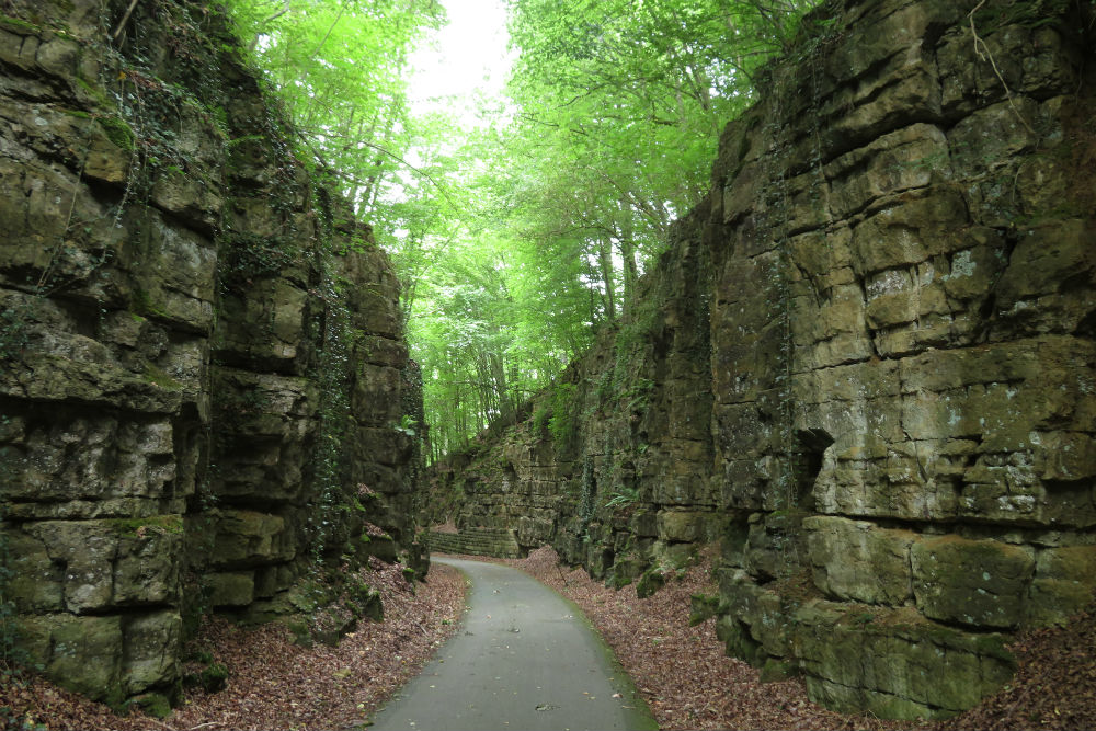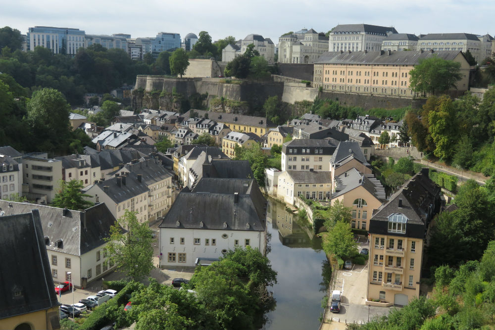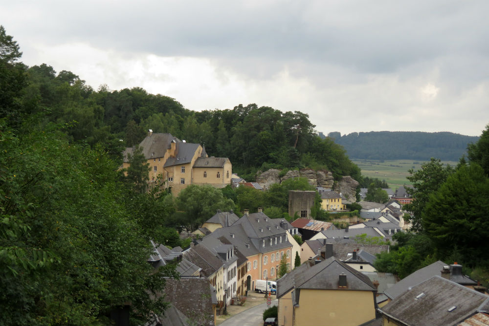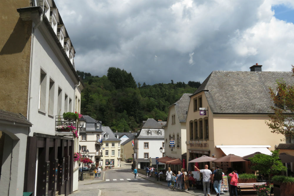 Ik maakte vandaag nog eens gebruik van Route You om me naar en door Luxemburg te leiden. Dat gebeurde grotendeels over de fietsroute,grotendeels verkeersvrij met hier en daar wel mogelijkheid op landbouwvoertuigen. Tegen dat ik in Luxemburg was kwamen ook alweer de eerste wolken opzetten. Voor een echt bezoek aan een stad moet je te voet zijn maar ik heb “en passant” toch een behoorlijke indruk gekregen van de stad. Voorbij Luxemburg ging het richting Bourglinster om daar langs het kasteel te passeren. Ondertussen was het al stevig bewolkt en tijd om de fietsroute richting Echternach op te zoeken. Ook hier was het, op enkele kruisingen na, verkeersvrij. De fietsweg liep, zoals wel meer, grotendeels over een oude treinbedding, door het bos en tussen de rotsen. Met nog een 12 Km te gaan begon het te regenen. Echternach heb ik voorlopig dus links laten liggen, hopelijk heb ik morgenvroeg meer geluk wanneer ik terug langs daar verder ga.