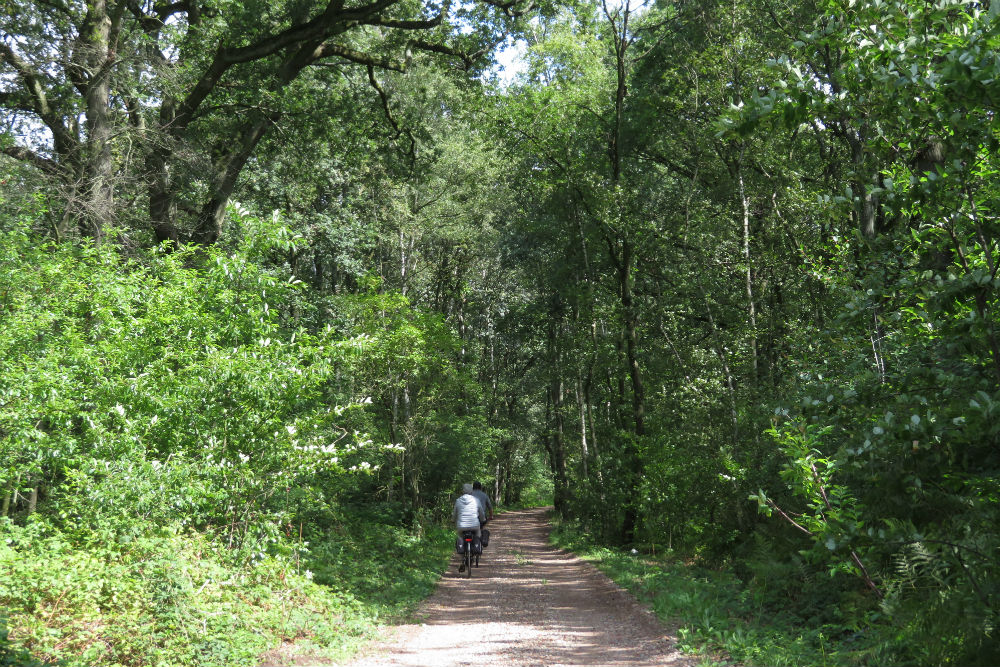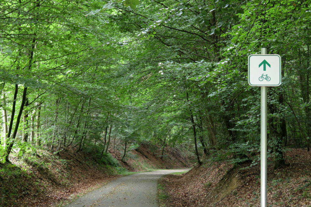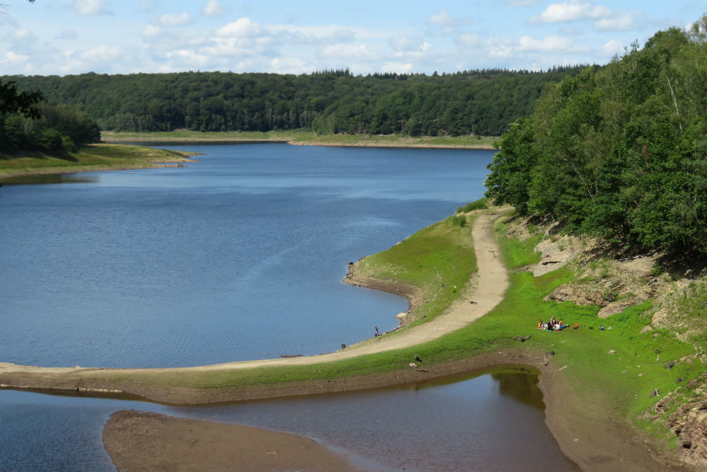 Een eind voorbij Sankt Vith kwam ik op de Vennbahn terecht, een hier erg gepromote en dus druk bezochte fietsroute over, alweer, een oude spoorlijn. Voor mij werd het hier wel even fysiek oncomfortabel, ik kreeg namelijk felle buikkrampen. Twee keer moest ik het bos in kruipen, gelukkig was er ruim voldoende bos aanwezig, en nog was de spanning in mijn buik niet weg. Wel verbeterde het stilaan na mijn tweede stop. In die mate dat ik op de Botrange alweer terug klaar was voor rijsttaart en koffie, lekkere rijsttaart trouwens. Na de Botrange zou je denken dat het alleen bergafwaarts kan gaan maar een beetje verder ging het al terug omhoog om de Baraque Michel te passeren. Daarna ging het dan wel een tijdje naar beneden. Tijdens die afdaling verliet ik de grote weg om het grote bos in te duiken, het ging wel nog verder bergaf. In het bos kwam ik langs de achterkant van, ik veronderstel, het stuwmeer van de Gileppe. Daarna kreeg ik nog even een opstootje alvorens terug verder af te dalen naar mijn camping.