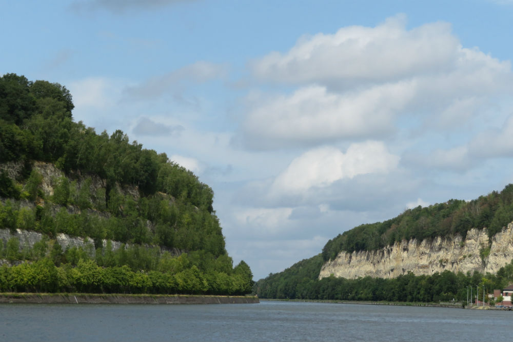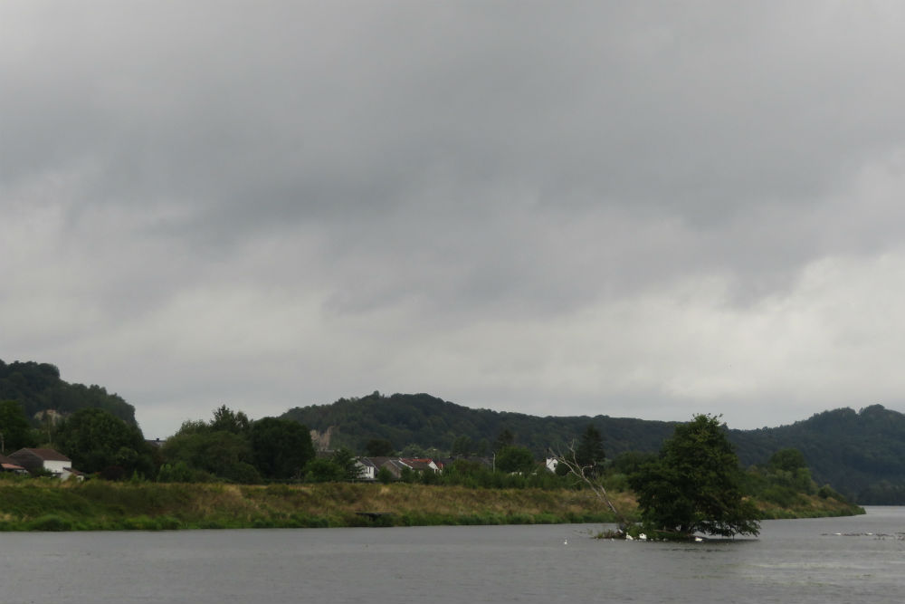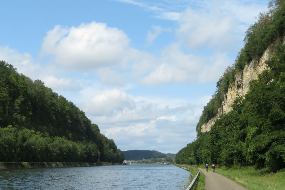 Ik moest vandaag een 200 meter dalen, dat wordt makkelijk denk je dan maar dat viel lelijk tegen. De eerste helft ging het nog behoorlijk op en af en de tweede helft speelde die onaangename wind. Mijn route liep vandaag langs de Voerstreek, in de jaren 70 en 80 heel populair voor groepswandelingen 😉 maar vandaag was het er wel heel erg rustig en leken er vooral Nederlanders te zijn. Na de Voer ging ik voor een stukje door Nederland. In Eijsden reed ik een stukje om voor een middagstop aan de oever van de Maas. Er stond daar nog een goed dozijn fietsen maar op een enkele koersfiets na was de mijne de enige zonder batterij. Na de stop ging het aan de andere kant van de Maas verder, als ik beter opgelet had dan had ik mij een handvol kilometers kunnen besparen door het overzetje te nemen maar zo vooruitziend ben ik dus niet geweest. Van de Maas ging het over naar het Albertkanaal op een plaats die ik direct herkende van de passage tijdens mijn rondje van België 2 jaar geleden, toen ik van Visé helemaal langs de Maas tot Herentals reed.