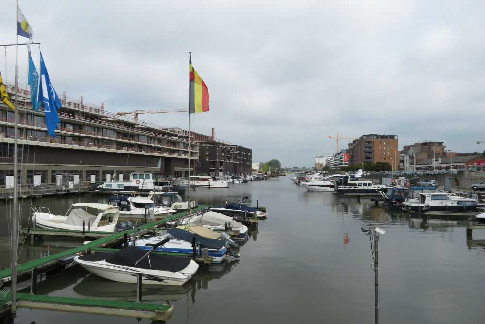Het was maar een kort stukje terug naar het Albertkanaal, vooraf netjes uitgelegd door Dirk. Daarna zou ik het kanaal volgen, helemaal tot aan de koekjesfabriek in Herentals waar ik ooit in een ver verleden nog 2 weken werknemer was. Bleek echter dat je ook langs het kanaal nog wel een foutje kunt maken door op de verkeerde moment de verkeerde kant te kiezen, waardoor je in Hasselt nog even rond de jachthaven mag. Nog wet extra bemoeilijkt door de bouw van nieuwe appartementen langs de kant. Precies om 12 uur en halfweg de rit was de moment voor een “croque garnituur” bij de waterskiërs van Tervant. Verder moest er ook al wel eens rondgereden worden vanwege bruggen die vervangen worden. Soms was dat al eens behoorlijk ver rond rijden, waardoor mijn stop halfweg niet echt halfweg was maar dat het tweede deel uiteindelijk 10 Km langer was. Bij Kwaadmechelen werd de omleiding ook al eens ingewikkeld omdat ze slecht aangegeven was. Verder ging het ook al eens over bos- of veldwegen, geen probleem voor de “dikke banden fietser” maar de gemiddelde wielertoerist zal er wel niet zo blij mee zijn.