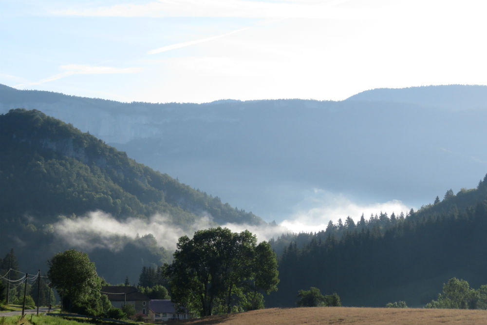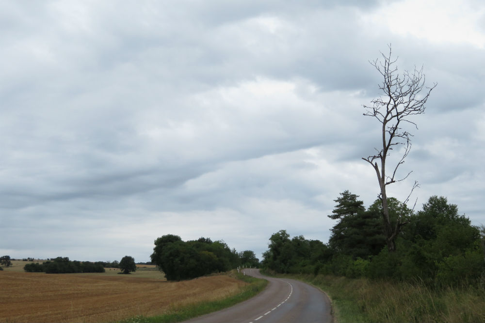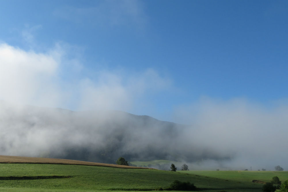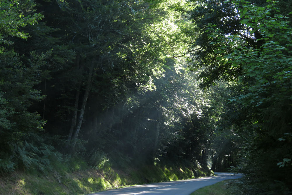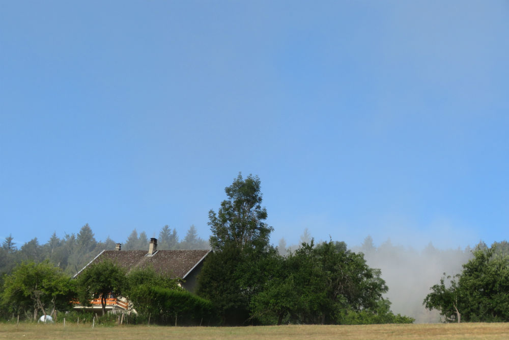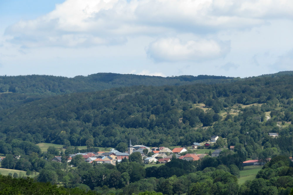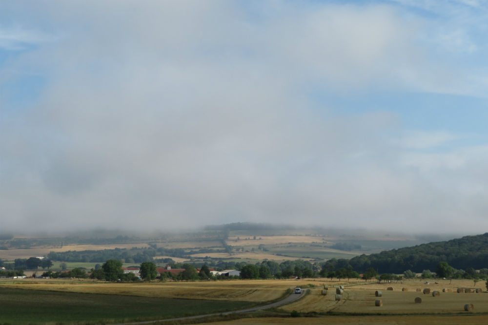 Het heeft gisteren niet meer geregend maar vanmorgen werd ik wel wakker met het geluid van druppels op mijn tent. Die druppels kwamen echter van de vochtigheid van de bomen, het was moeilijk te zeggen of het nu fijne motregen dan wel dikke mist was maar de lucht was dus erg vochtig. Zo ben ik ook vertrokken met schoenovertrekjes en regenjasje maar van omstreeks 9 uur begon de zon haar werk te doen en brandde de vochtigheid weg. Op de ene plaats duurde het een beetje langer dan op de andere maar uiteindelijk werd het een warme zonnige dag. Een mooie dag ook, de omgeving was tamelijk hetzelfde als de voorbije dagen maar op een of andere manier beviel het mij vandaag schijnbaar beter. Het was misschien omdat de hellingen toch wat meer heuvels waren dan gewoon constant op en af. De dorpjes hebben ook hun charme hoewel dikwijls afgeleefd en vrij doods. De laatste loodjes waren vandaag het zwaarst met nog 2 pittige klimmetjes langs de vallei van de Moselle.