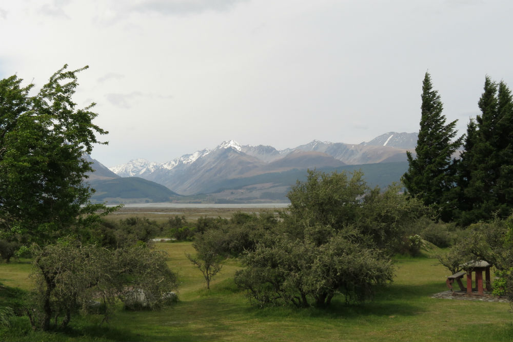 Aangezien ik donderdag al een kleine 25 Km teruggekeerd was, restte me vandaag nog maar een heel kort ritje om op schema te blijven. Een optie was, zoals gisteren al gezegd, om terug naar boven te rijden en daar alsnog een wandeling te doen. Het kon best maar dan kwam er een 50 Km + een wandeling van minstens een uur bij, wat het dan weer een behoorlijk stevige dag zou maken. Het was echter het feit dat ik maar vrij laat in de cafetaria terecht kon om te ontbijten en dus pas rond half tien kon vertrekken dat me uiteindelijk deed besluiten om het toch maar bij mijn korte ritje te houden, het zou anders ook nog een heel lange dag kunnen worden. Het is wel jammer van de wandelingen want ze moeten wel de moeite geweest zijn. Anderzijds weet je ook niet hoe het er in de bewolkte omstandigheden zou uitzien. Nu, soms wint gewoon het weer. Gisteren passeerden hier ook mensen die een helikoptervlucht geboekt hadden en onverrichter zake moesten voortgaan vanwege de wind. Ik kreeg tijdens mijn ontbijt trouwens gezelschap van een koppel uit Australië die gisteren in Mt Cook waren en daar in hun camper overnachtten, ze vonden het er behoorlijk extreem winderig en hadden ook niet hun beste nacht gepasseerd vanwege de wind. In Glentanner blijven was gisteren dus waarschijnlijk de beste optie.