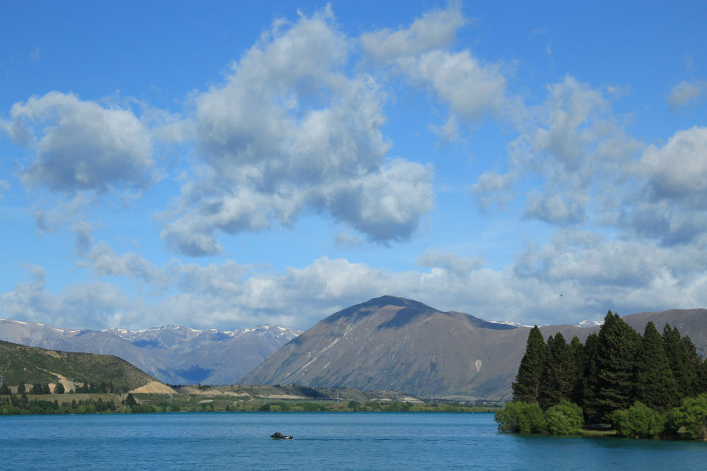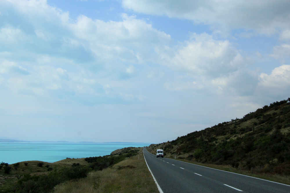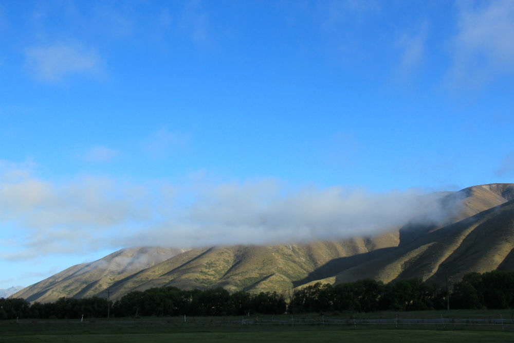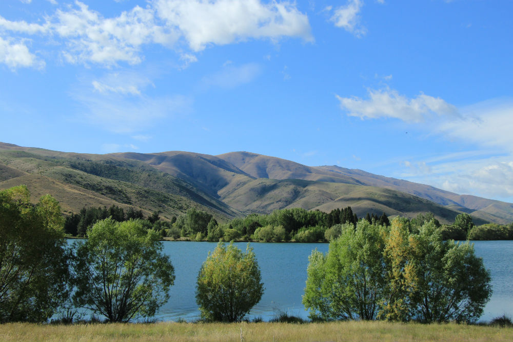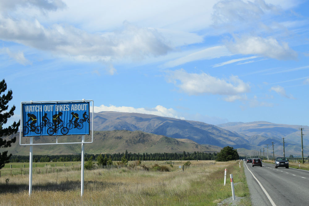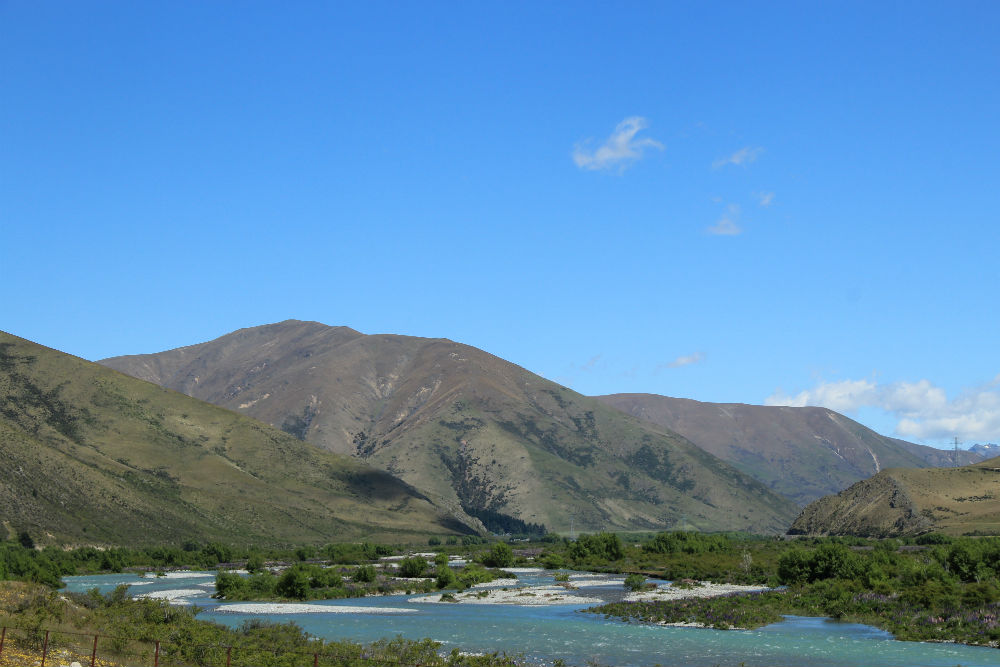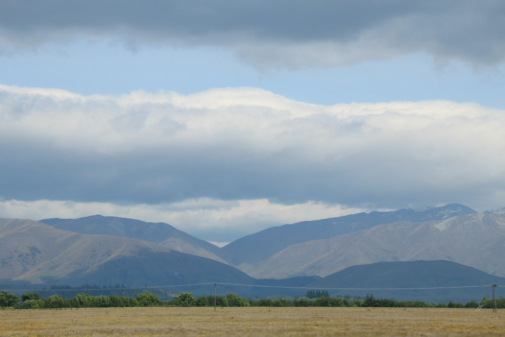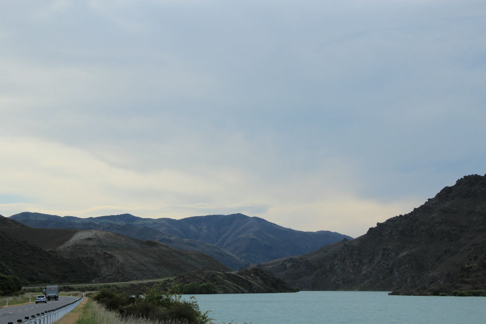 De dag begon vanmorgen met veel zon, een beetje regen en natuurlijk wat wind. Het viel uiteindelijk wel mee, de regen was voorbij voor ik vertrok en de wind bleef wel beperkt. De wind kwam overigens ook niet meer van voor maar eerder van rechts, het was dus een prachtige fietsdag … tot mid voormiddag. In de omgeving van Omarama trok de wind terug stevig aan en bovendien maakte ik daar een grote bocht naar rechts, waardoor ik de wind dus ook terug van voor kreeg. Het weer bleef mooi maar niet zo aangenaam meer. Je zou kunnen denken dat het aan mijn windgevoel ligt maar op mijn koffiestop hoorde ik ook de locals onder elkaar zeggen dat het weer “windy” werd en bij mijn aankomst werd ook eerst over de wind gesproken. Ze vinden het dus ook zelf wel behoorlijk winderig.