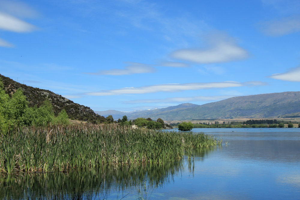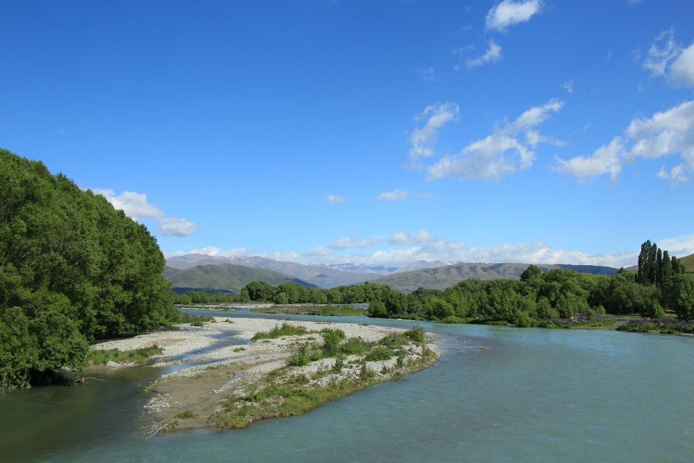 Ik nam vanmorgen afscheid van weg Nr 8. Eerst ging het langs een kleinere weg tot Millers Flat. Even voorbij eindigde het asfalt en ging de weg over op onverhard. Daar nam ik echter de Clutha Gold trail, die nog wel af en toe de “gewone” weg opging maar ook afgescheiden. De afgescheiden stukken van de trail waren leuker want beter te fietsen, de weg was ruwer en had meer last van stenen. Clutha is trouwens ook de naam van de rivier die ik zowat de hele dag volgde. Na 20 Km trail, bij Beaumont, stak ik wel de rivier over om aan de andere kant over het asfalt verder te gaan.