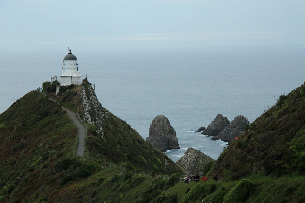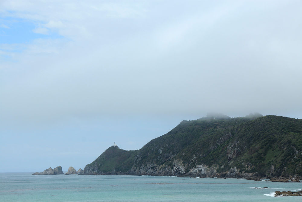 Ik nam vandaag de “scenic route”, officieel zelfs, en bereikte daarbij de kust, aan kilometer 19 om precies te zijn. Ik deed ook nog een extraatje naar Nugget Point, met een vuurtoren boven op een uitstekende rots. Het koste wel wat inspanning want er moest even stevig voor geklommen worden.