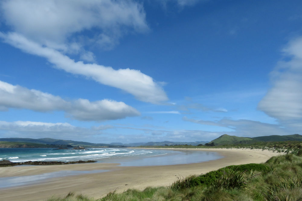 Ik reed vanmorgen eerst naar Surat Bay en maakte daar een wandeling langs de baai. Deze baai is bekend voor zeeleeuwen die er dikwijls komen rusten op het strand maar dat geluk had ik niet vandaag, het is er echter ook zonder zeeleeuwen de moeite waard. Daarna reed ik nog naar Pounawea, een dorpje aan de andere kant van de monding van de Owaka rivier. Daarna ging het terug naar Owaka voor een rustige namiddag.