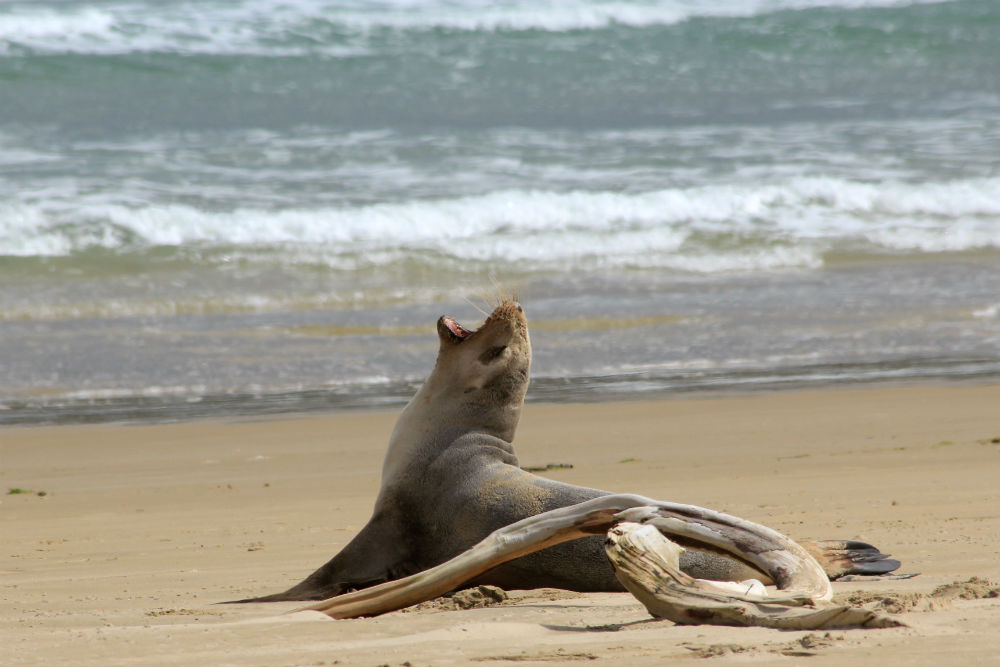 Omdat ik nog een hele namiddag had en het toch niet ver was ben ik nog eens terug naar Surat Bay geweest en deze keer had ik meer geluk, ik had 2 leuke ontmoetingen. De eerste was waarschijnlijk een jong mannetje terwijl de tweede mogelijk een vrouwtje was, die zijn grijzer van kleur.