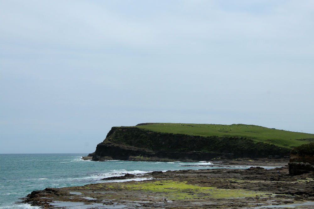 Mijn rit eindigde in de Lazy Dolphin in Curio Bay. Er worden in deze baai nogal eens dolfijnen gespot maar vandaag lijken ze voorlopig inderdaad lazy, ik heb ze nog niet gezien. Als het er toch nog van komt dan volgt er wel weer een bonus.