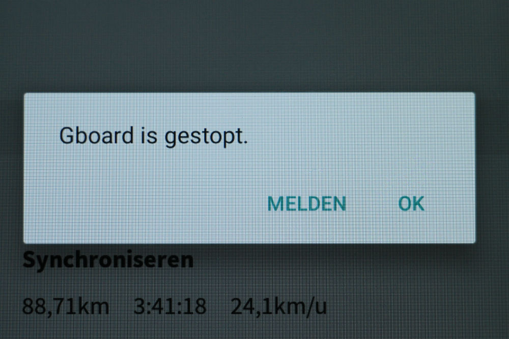 Vandaag zou de eerste dag moeten geweest zijn dat ik mijn rit niet kon uploaden omdat ik momenteel geen paswoord kan ingeven maar omdat ik hier al eens eerder was kende mijn telefoon het paswoord nog, waardoor ik het dus niet weer moest ingeven. Overigens werkt het klavier niet alleen niet maar het blijft dat ook nog irritant dikwijls melden, waarbij je dan telkens weer op OK of melden moet drukken om iets anders te kunnen doen. Het maakt overigens geen verschil uit op welke van de 2 je drukt, het resultaat is net hetzelfde.