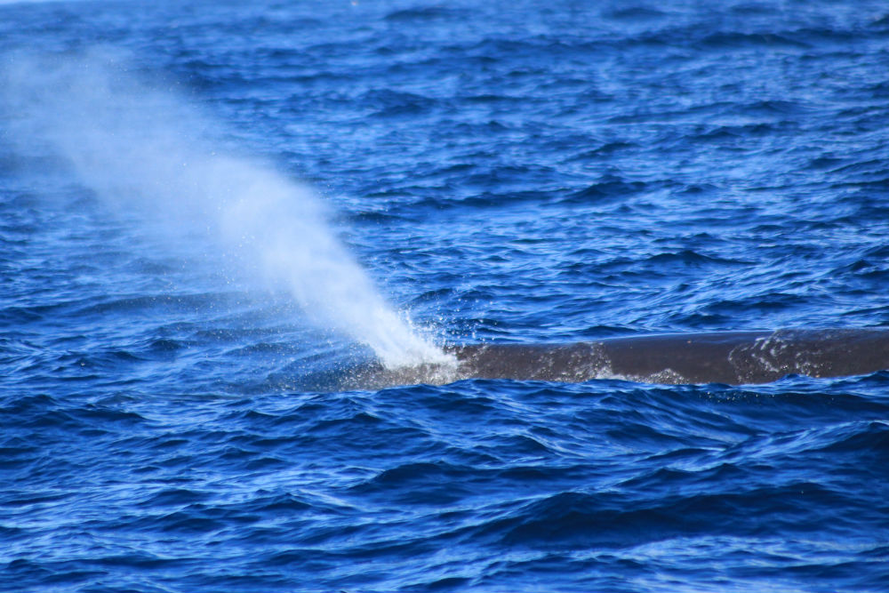 We misten ook nog nip een tweede contact, de captain zag hem duiken terwijl we hem naderden. Om dat goed te maken zijn we dan nog op zoek gegaan naar een groep dolfijnen. Het betekende dat we wat later zouden terugkeren maar dat kon vandaag geen kwaad. Terwijl we bij de dolfijnen waren kwam plots een stevige wind opzetten, er was ook storm voorspeld voor de namiddag. De volgende 4 uitvaarten waren alvast gecancelled vanwege de ruwe zee en daardoor kon het dus geen kwaad dat wij wat langer wegbleven, het ging niet ten nadele van een volgende groep.