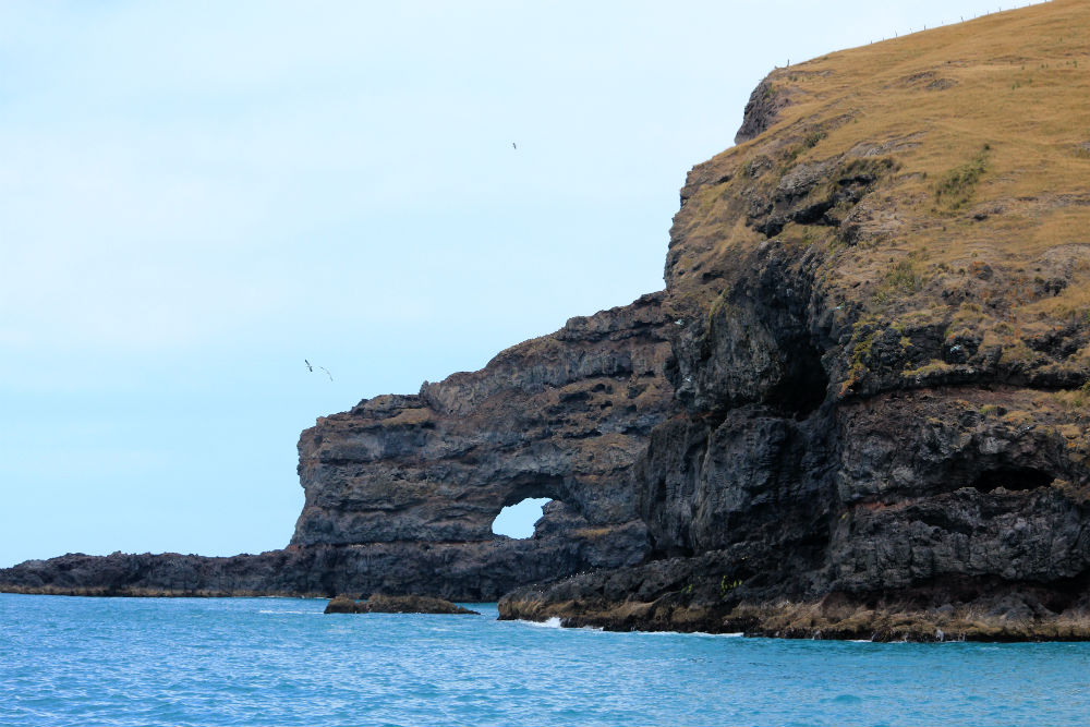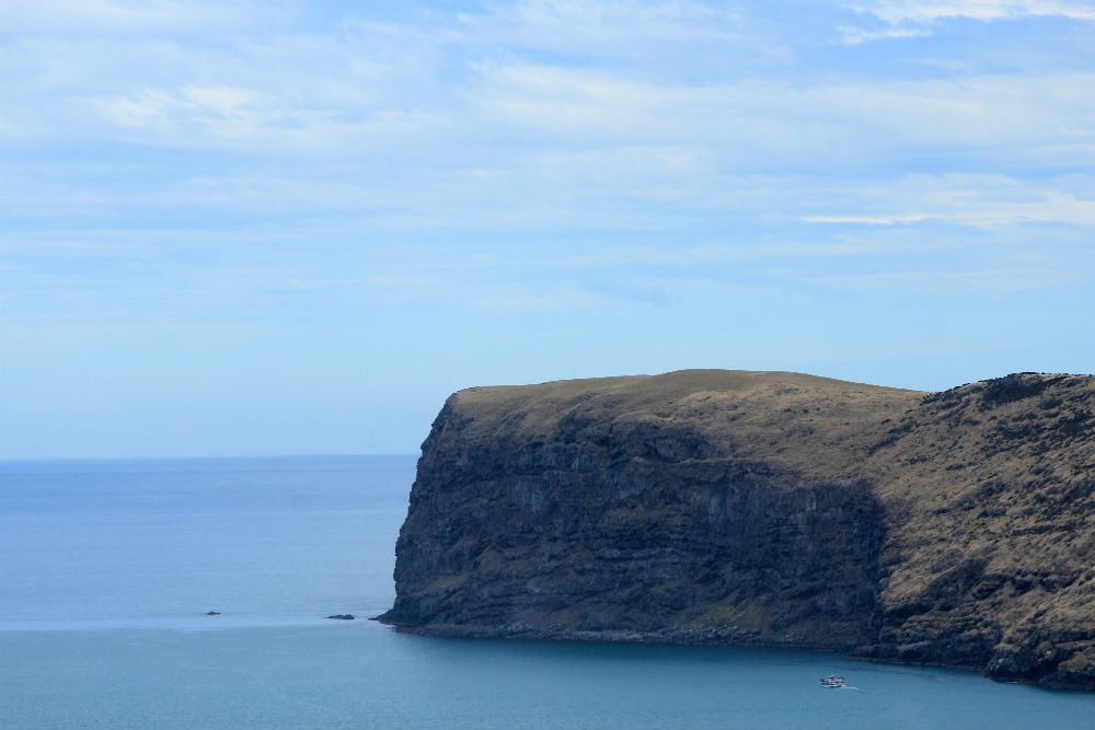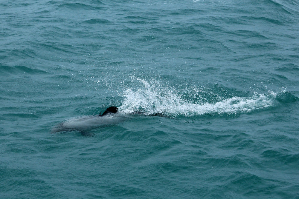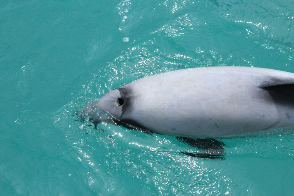Ik had dus gezegd dat ik vandaag zou gaan bootje varen en de ster van de dag was daarbij de Hector dolfijn. De Hector dolfijn is de kleinste en zeldzaamste dolfijn in zee, hij komt alleen rond het Zuid Eiland van Nieuw Zeeland voor en een grote kolonie daarvan bevind zich in, en in de omgeving van, de “Akaroa Harbour”. De Akaroa Harbour is dus eigenlijk de fjord hier.
