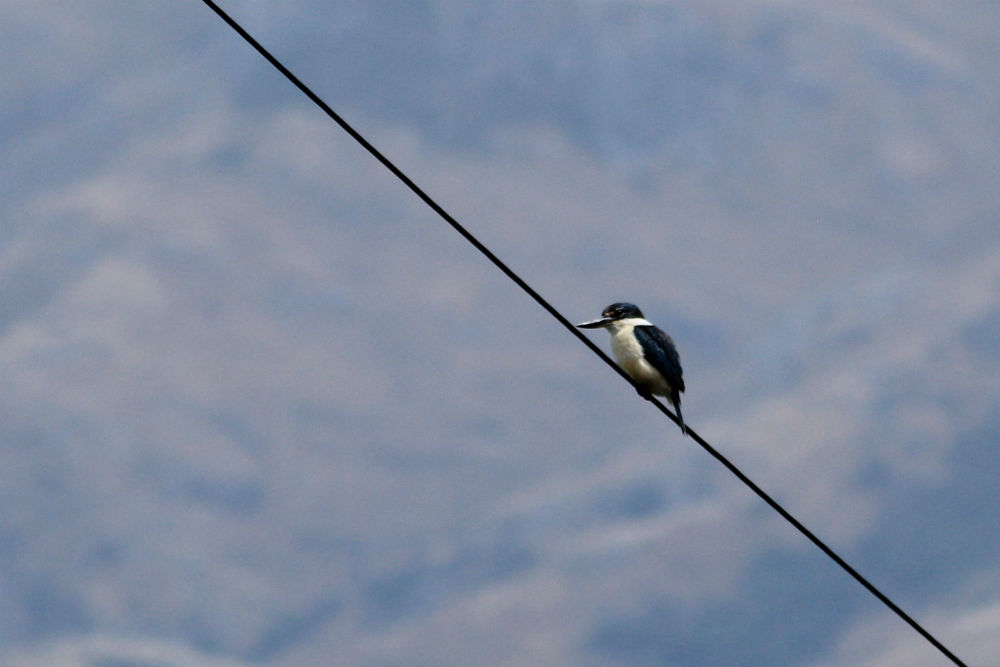 De route ging verder over Highway 1, tot aan kilometer 22 nog langs de kust maar dan wat meer het binnenland in. Het veranderde aanvankelijk weinig aan de situatie, alleen werden de hellingen een stuk langer en hoger. Al snel werden echter ook de wolken daar wat donkerder en een eindje verder begon het heel lichtjes te motregenen. Nauwelijks het noemen waard en de moeite niet om regenkledij aan te doen. Een eind verder werden de druppels echter toch wat groter en toen ik even voor een top de gelegenheid zag deed ik toch maar mijn jasje bij aan, schoenovertrekken en regenbroek leken me niet nodig maar een jasje toch wel. Over de top bleek al vlug dat ik beter het hele pakket aangedaan had, aan de andere kant reed ik recht in een stevige bui. Af en toe stopte het eventjes maar uiteindelijk zou ik eigenlijk een dik uur door de stevige regen rijden. Toen ik de laatste heuvel over was begon het ook weer op te klaren en ik eindigde uiteindelijk in de zon.