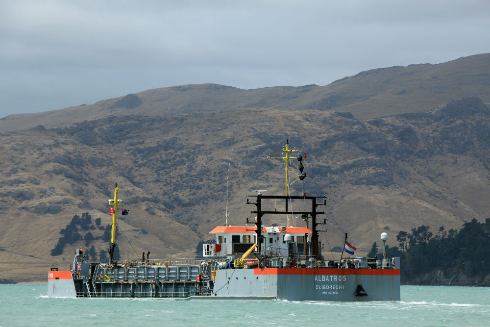 Toen ik in Lyttelton aankwam voelde ik me al bijna thuis. In de mate dat ik me, na een twaalftal bezoeken, behoorlijk thuis voel in Noorwegen. Lyttelton blijkt ook een cruise bestemming te zijn, vanwaar ze waarschijnlijk o.a. Christchurch bezoeken. Bij de terugkeer met het veerbootje voelde ik me nog dichter bij huis met de verschijning van de Albatros uit Sliedrecht.