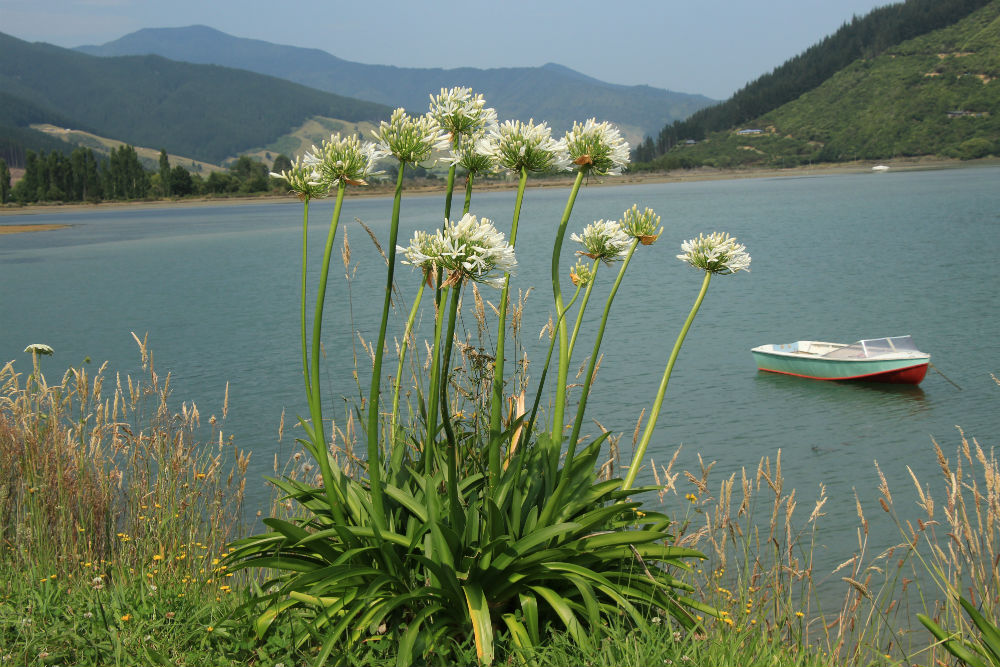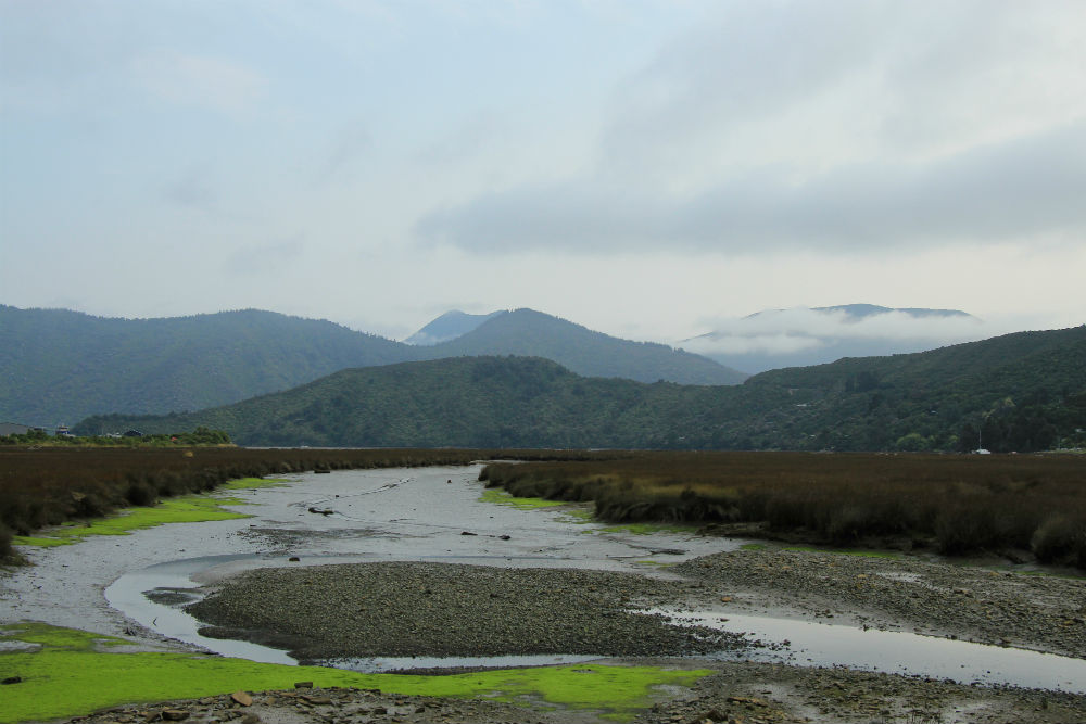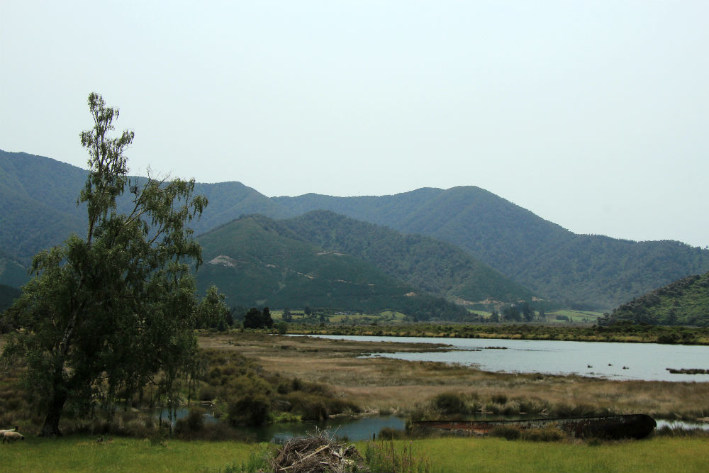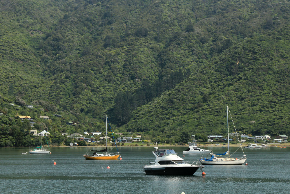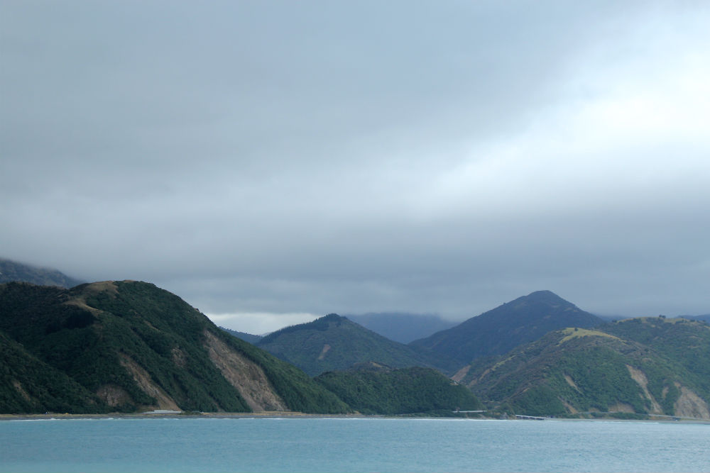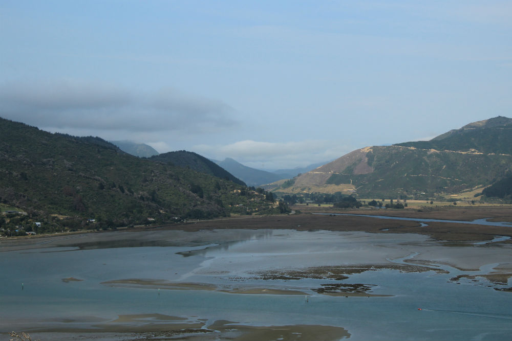 Pas bij het vertrek vandaag, bergop, werd duidelijk hoe mooi de omgeving van Havelock eigenlijk wel is. Boven op het bergje ging ik nog even te voet verder naar een uitkijkpunt. Toen ik terug bij mijn fiets kwam heb ik de “lange laag” toch maar terug uit gedaan, het was toch alweer behoorlijk warm aan het worden. Toch zou het de hele voormiddag overwegend bewolkt blijven en soms toch vrij fris zijn. Na het uitzichtpunt ging het nog even verder langs de fjord om dan over te steken naar een volgende, die ik dan weer zou volgen tot Picton.