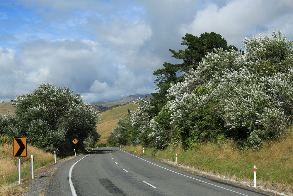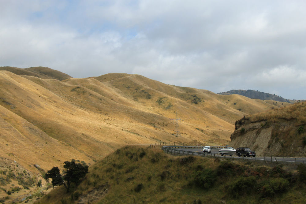 De route ging vandaag over SH 1, een weg die helemaal verder loopt naar Bluff in het uiterste zuiden. Hij begint trouwens in het uiterste noorden van North Island, met een ferrylink tussen Wellington en Picton. Het is wel een behoorlijk drukke weg maar de passage door de heuvels vond ik wel schitterend, ik houd wel van die grote leegte. Verder waren er ook massaal veel wijngaarden onderweg en op het einde dus een motel in Ward.