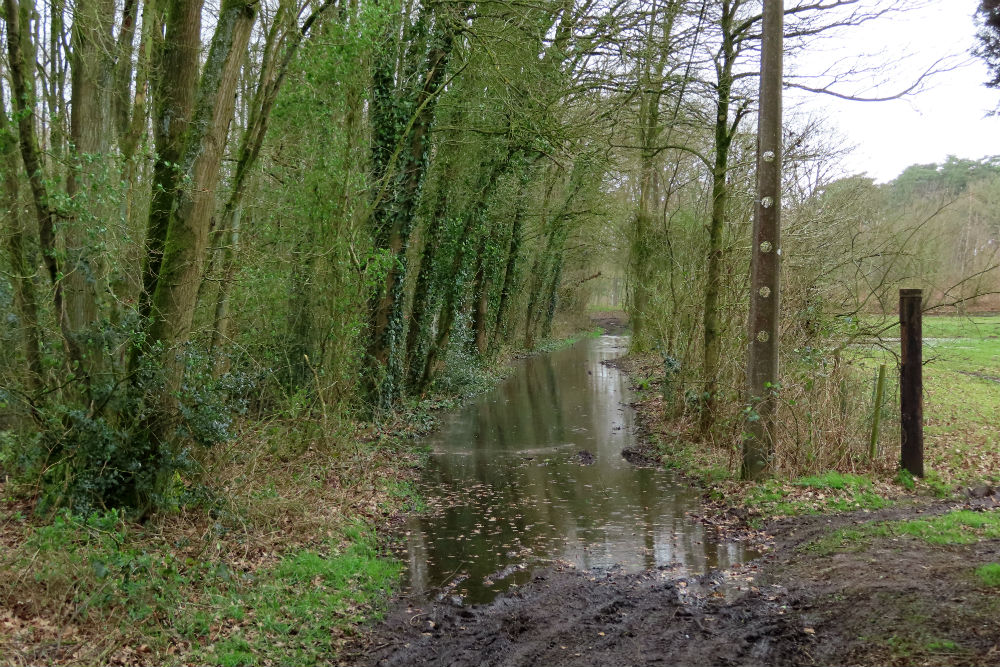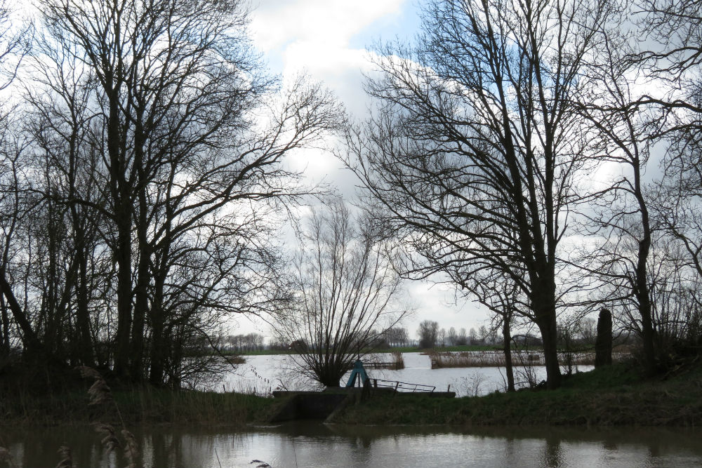 Verder was het vandaag uiteraard mooi fietsweer maar stond er toch wel een behoorlijk windje. Het water is op de meeste plaatsen ondertussen weggetrokken maar in de omgeving van de Blankaart reed ik er toch nog dwars tussen.