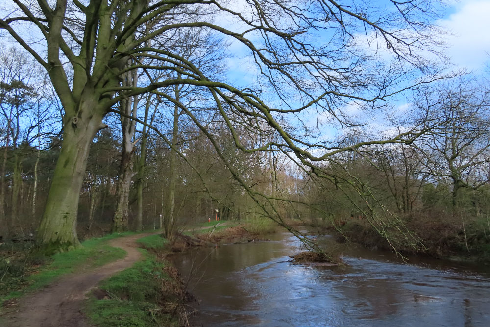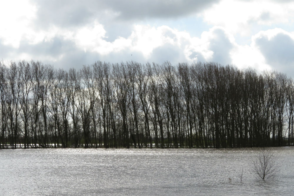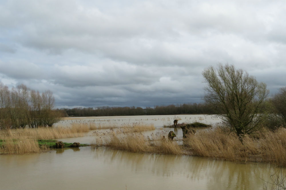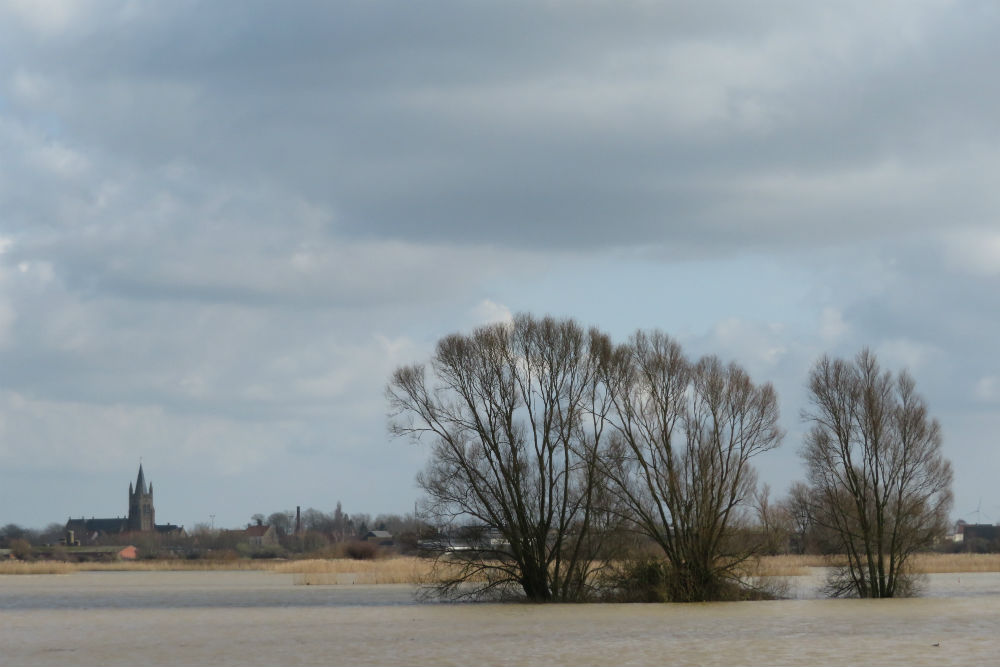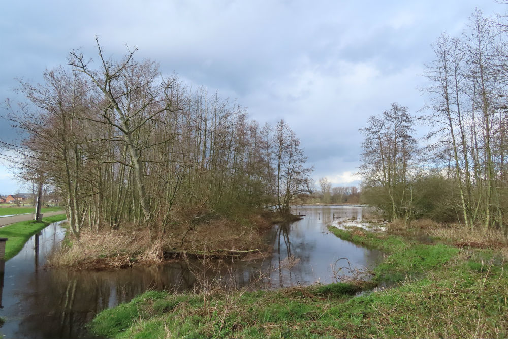 Vandaag wolken en wind, vooral wind, getrotseerd om toch een fietstochtje te maken maar ik heb dat voor de gelegenheid eens met mijn “dikkebandenfiets” gedaan en nam daarbij ook een camera mee. Er stond woensdag al behoorlijk wat water in en langs de IJzer en het leek me wel een idee om dat, na nog een extra regendag, eens te registreren. En dat gaat volgens mij dus beter met een gewonere fiets. Ook in het kanaal richting IJzer stond het water trouwens behoorlijk hoog.