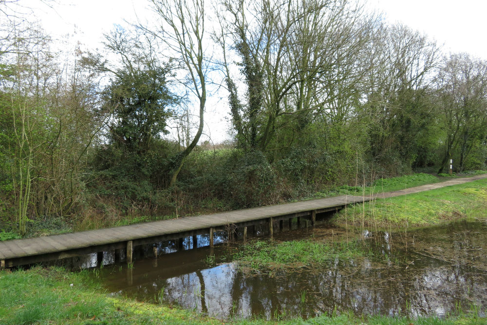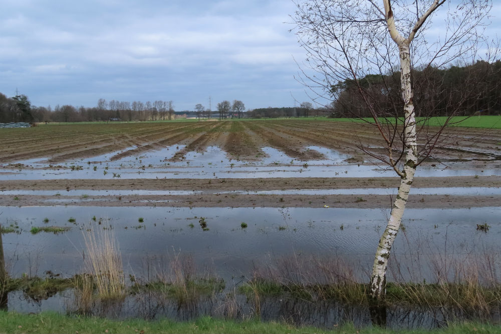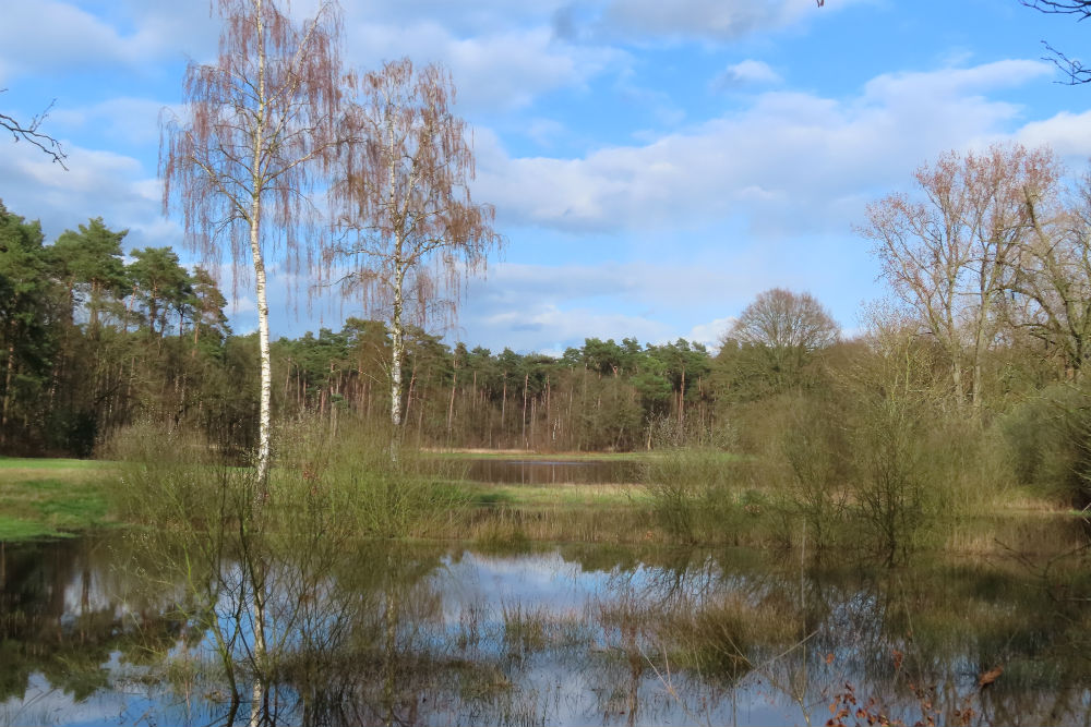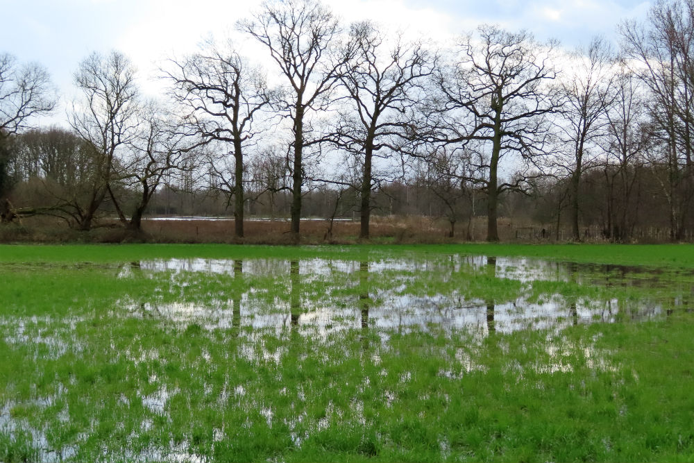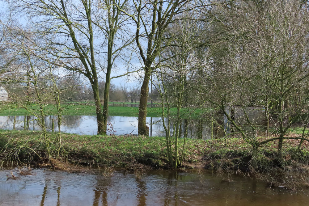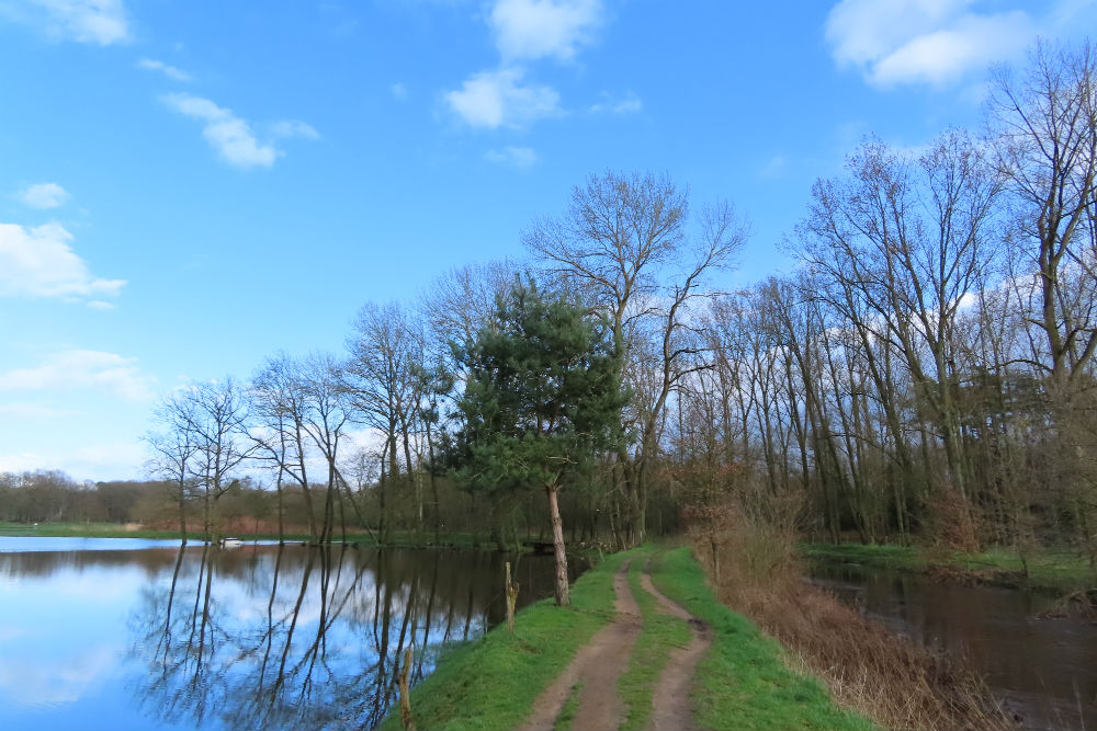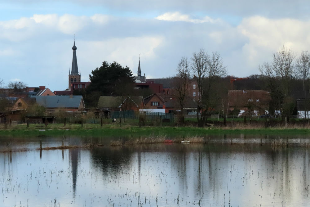 Van Herentals naar Vorselaar ging het dan weer verder te voet. Ook in het land van Nete en Aa staat overigens nog behoorlijk veel water, in die mate dat ik op bepaald moment moest terugkeren omdat er geen doorkomen meer aan was. Ik ging dan maar naar de andere oever van de Nete verder, daar kom ik wel eens meer en had ik wel vertrouwen in de doorgangsmogelijkheid. Ik deed zo wel een 3 kilometer extra. De weiden leken op sommige plaatsen wel rijstvelden. Het gebeurt niet dikwijls dat je een foto kan nemen van Vorselaar weerspiegelend in het water.