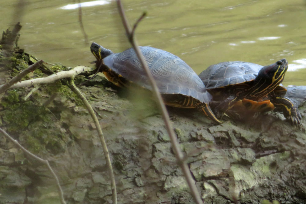 De wind op zich mag me niet meer tegenhouden maar in combinatie met de vochtigheid koos ik vandaag toch maar voor een wandeling. De nattigheid op de weg droogde in de wind wel behoorlijk snel op maar de rukwinden zouden het vermoedelijk toch een eerder oncomfortabele rit gemaakt hebben, de juiste beslissing genomen denk ik. Ik maakte nog eens mijn wandeling langs Zillebeke Vijver en de Verdronken Weide. Niet alleen de weide is momenteel verdronken, hier en daar ook het pad 🙂 . Op de Vestingen werd ik verrast door een fuut met een al vrij groot jong, dat lijkt me behoorlijk vroeg.