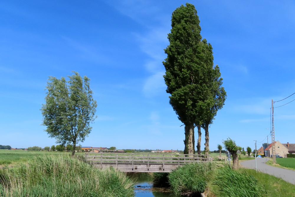 Ik reed door Poperinge rechtstreeks richting Watou, vanwaar ik aansluiting maakte met mijn normaal parcours richting De Moeren. In Bulskamp nam ik deze keer de richting naar Veurne maar voor een uitgebreid bezoek daar moet ik misschien maar eens terugkeren, ik nam er wel even de tijd voor een meeneem koffie. Vanaf Veurne had ik een route uitgestippeld over minder- en onbekende wegen. Wegen ook waar ik niet zo vaak kom omdat ze niet racefiets geschikt zijn, zoals bijvoorbeeld door het Bos van Houthulst.