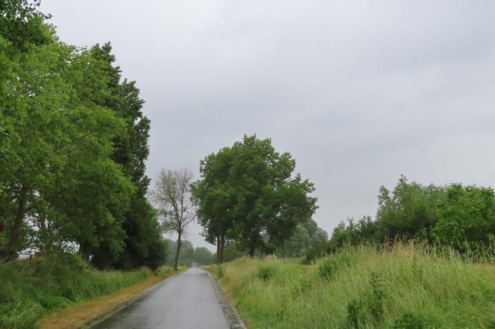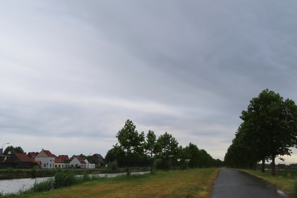 De rit begon best goed, wel een beetje licht gedruppel maar niets ernstig. Na 40 Km, aan de Leie begon het echter te regenen en nog eens 15 Km verder, in Deinze, kreeg ik mijn eerste stevige bui. Ik weet nu dat je dus inderdaad effectief buien kunt krijgen in de regen. Na een goed kwartier, schat ik, was de bui over en bleef het nog wat gewoon regenen tot het nog wat verder gewoon stopte met regenen. Het bleef dan best goed en droog, tot Antwerpen. In Antwerpen had ik aanvankelijk best wel wat geluk. In 3 richtingen werd het extreem donker maar ik ging naar de betere richting. Ik kreeg wel even de rand van een ongetwijfeld zware bui maar het zag er even veel erger uit. De wolken sloten later ook in mijn richting wel en ik kreeg toch nog een behoorlijk stevig buitje maar lang niet zo erg als dat het eerder dreigde. Ook deze bui ging vrij vlug over in wat lichtere regen voor het weer terug stopte.