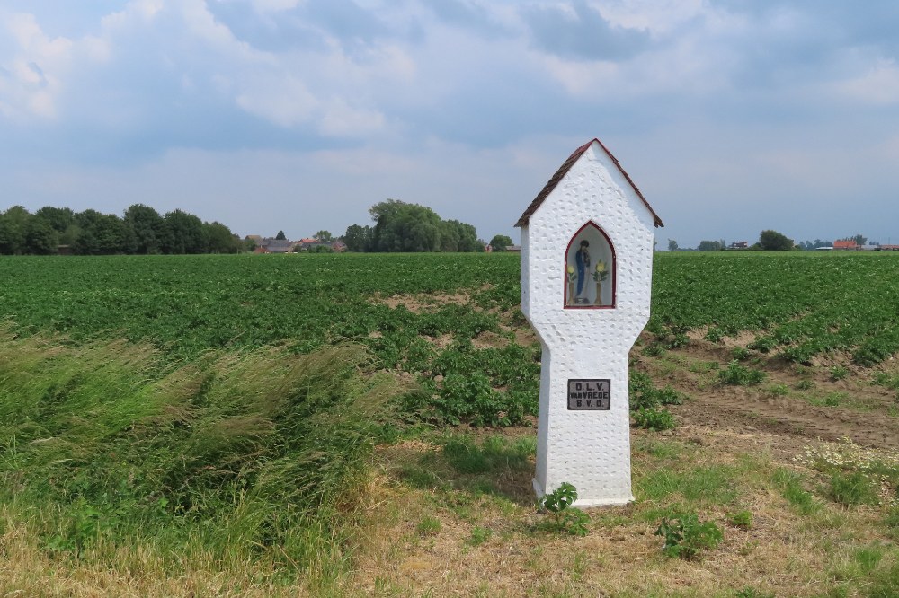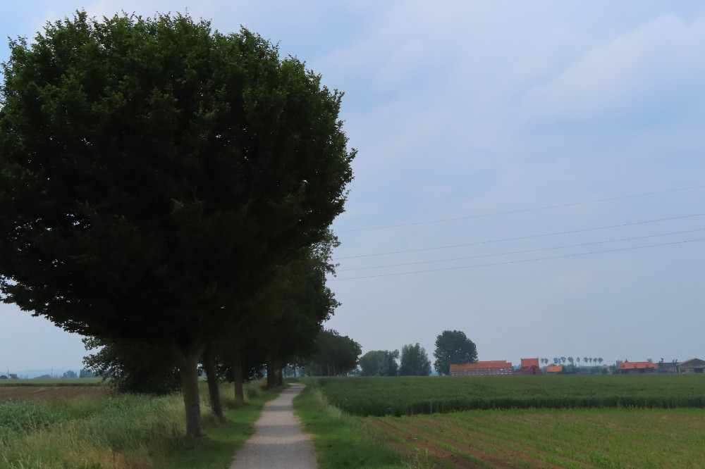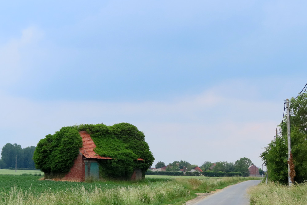 Ik dacht van deze voormiddag weer te kunnen gaan fietsen met mooi en droog weer. Net toen ik me wou gaan klaarmaken verschenen er echter grijze wolken aan de hemel. Met de buien van gisteren namiddag nog in gedachte besloot ik om dan maar niet te gaan fietsen, in plaats daarvan ging ik in eerste instantie winkelen. Later bleek het maar een smalle wolkenband geweest te zijn die al vlug voorbij was maar de voormiddag was ondertussen al tamelijk gevorderd en met de wetenschap dat hoe later hoe groter de kans op buien eigenlijk is had ik ondertussen mentaal het fietsen voor vandaag al geschrapt. Ik ben dus vanmiddag maar weer gaan wandelen. Om geen 2 dagen achter elkaar dezelfde wandeling te doen ging ik vandaag nog eens naar de Palingbeek. Ook heel mooi om te wandelen maar je moet dan ofwel je eerst verplaatsen tot daar ofwel een behoorlijk grote wandeling maken. Ik koos vandaag dus voor de eerste optie en ging met de fiets tot aan het begin van de Palingbeek. Ik nam voor de zekerheid wel een regenjas mee maar heb die uiteindelijk niet nodig gehad. Er stond wel een vrij stevig windje om te fietsen.