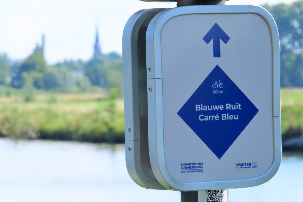Ik fietste vandaag de Blauwe Ruit / Carré Bleu. Ik had de bordjes al eerder gezien maar had geen idee wat het was, tot ik er onlangs een artikel over las. De Blauwe Ruit is een fietsroute langs waterwegen in de Eurometropool regio, Kortrijk – Doornik en Rijsel dus. De route loop langs de Leie, het Kanaal van Bossuyt, de Schelde, het Spierekanaal, het Kanaal van Roubaix en langs de Deûle terug naar de Leie. In Frankrijk liet de bewegwijzering het zwaar afweten maar gelukkig had ik ook de GPS route gedownload, anders had ik het niet gehaald.
