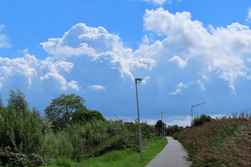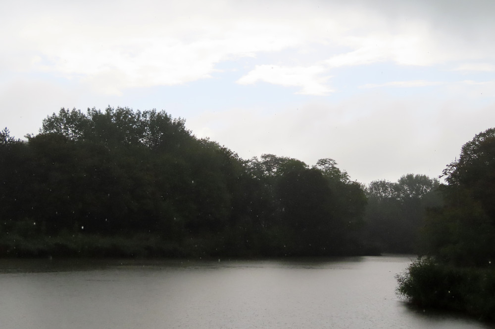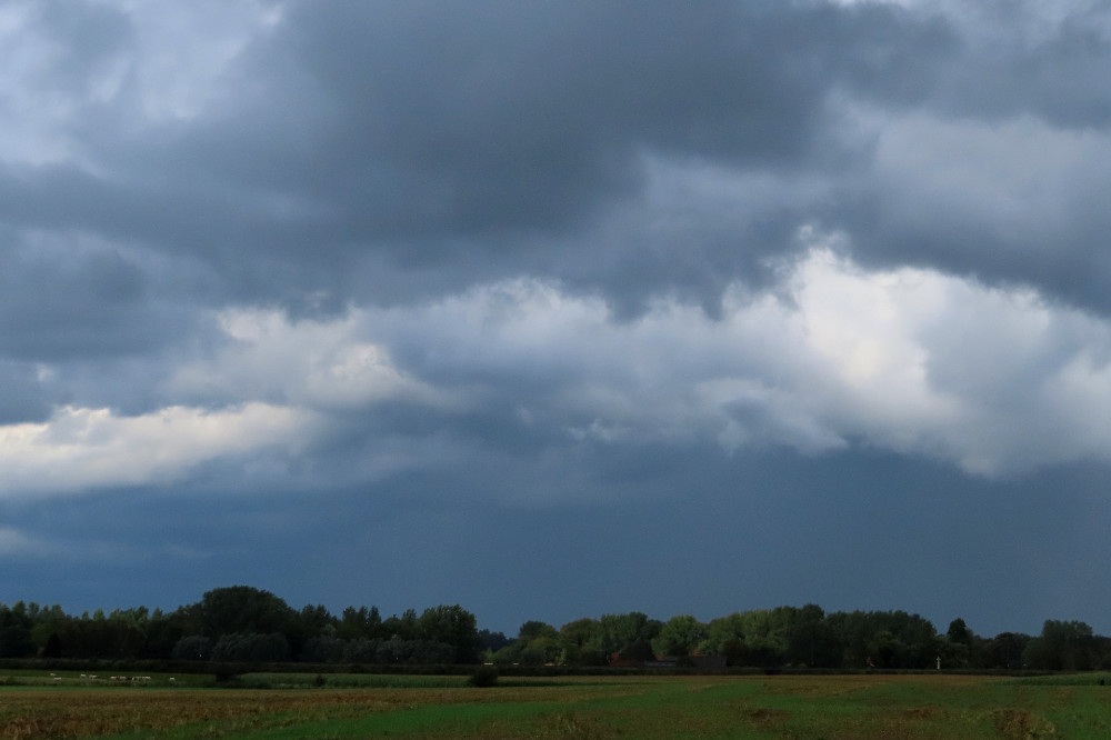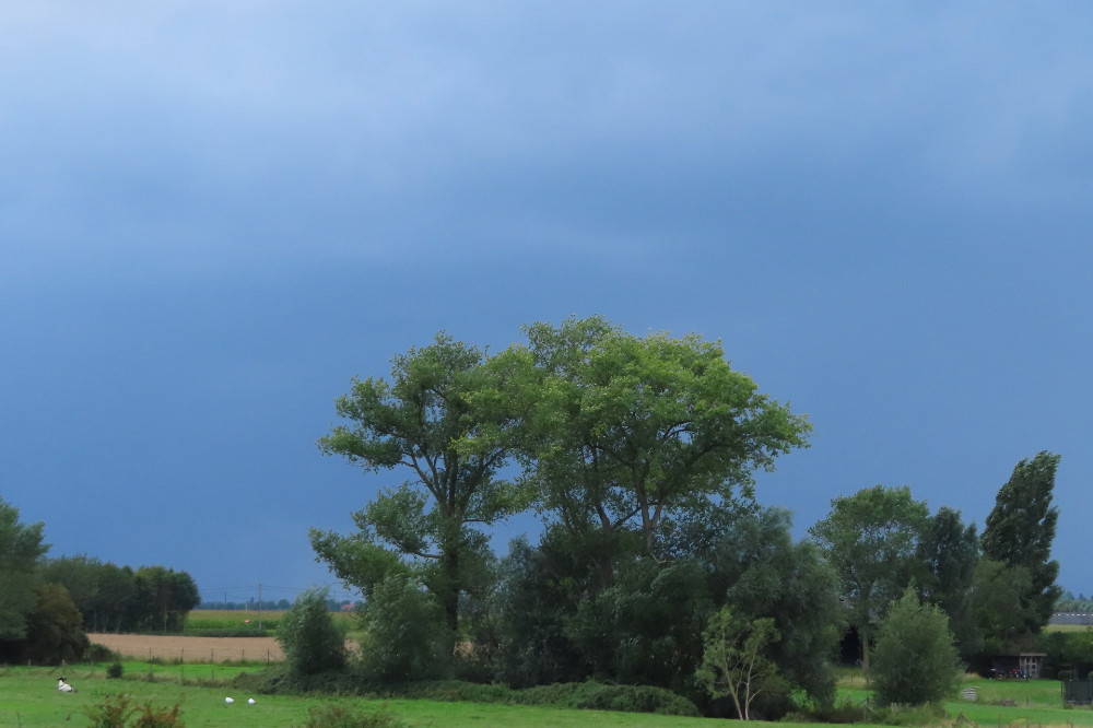 Tegen halfweg bleek wel dat ik wat optimistisch geweest was om zo ver van huis te gaan toen ik een wel erg donkere massa zag naderen. Echt zware regen viel er niet maar het werd toch wel even erg vochtig. Een eind verder was ik echter al snel terug droog, met behulp van zon en wind duurt dat niet lang.