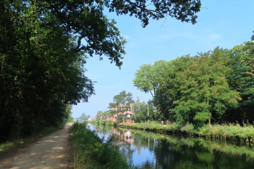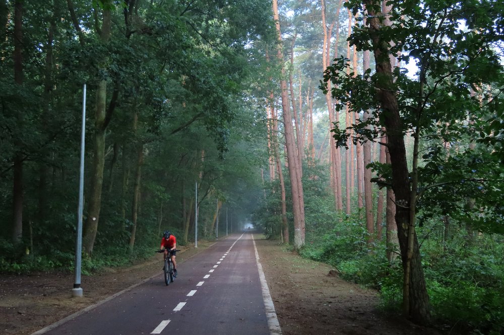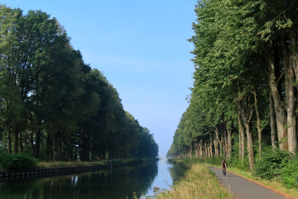 Het ging vandaag de andere richting uit en dan gaat het wat vlugger en meer door de bossen, tegenover gisteren nog de hele tijd langs het water. Toch ging het ook vandaag in het midden een heel stuk langs het kanaal, deze keer het Kempisch Kanaal Dessel – Schoten. Het ging daarbij ook geregeld over onverharde paden, met de crossfiets vind ik dat best leuk. De terugweg voorbij het kanaal was wel wat minder dik bebost dan de heenweg.