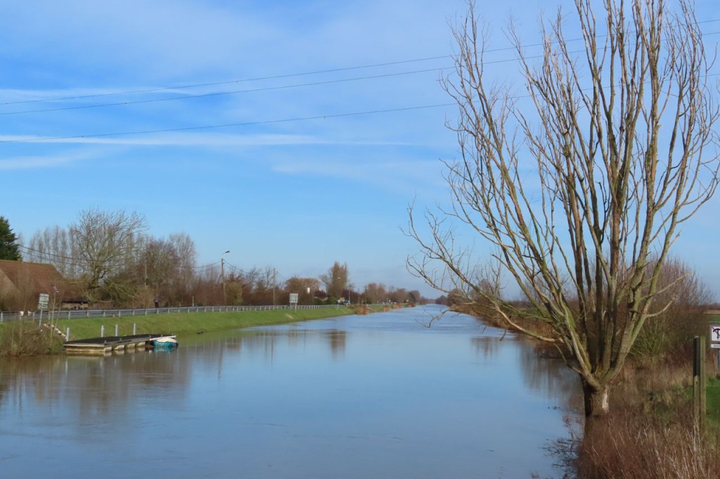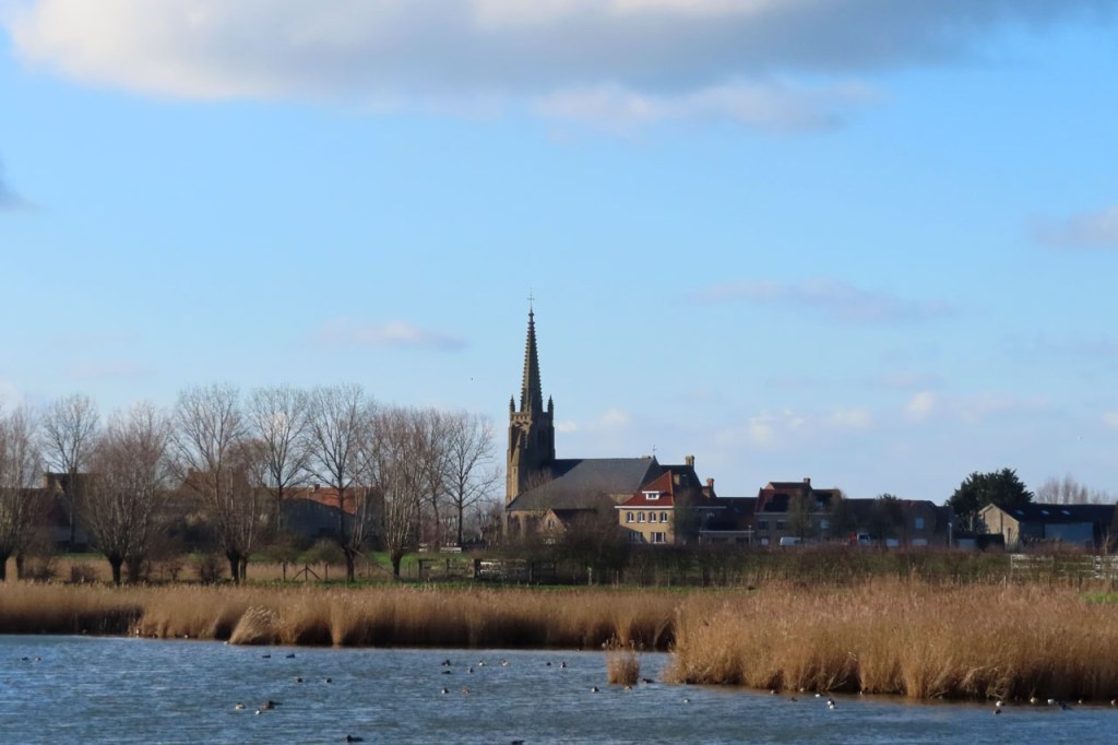 De omstandigheden waren vandaag een stuk minder, lees vochtigere en dus vettigere wegen, maar toch fietste ik voor de derde dag op rij en voor de tweede dag met de koersfiets dus. Ik ging tot op de schreve maar er niet over, ik had namelijk geen verklaring op zak 🙂 . In West-Vleteren moest ik mijn geplande route wat verleggen toen het baantje naar de Fintele nog steeds overspoeld bleek. Verderop langs de IJzer was er nochtans al veel water weggetrokken. De ooievaar hield zich nog steeds op dezelfde plaats op, bij de brug halfweg de Fintele en Knokkebrug.