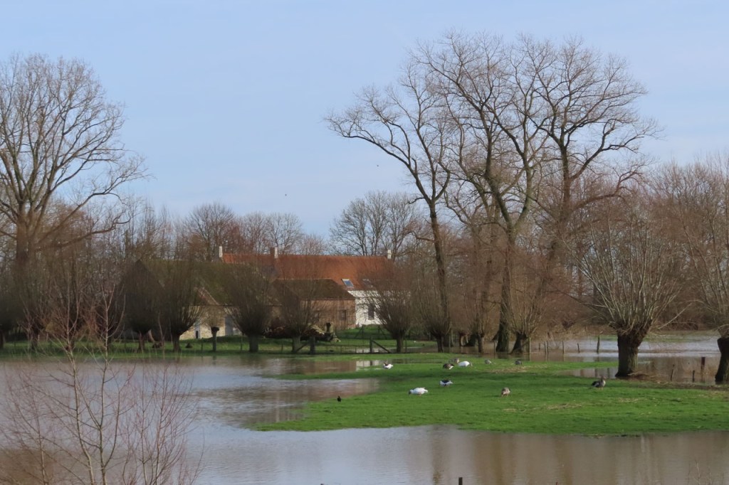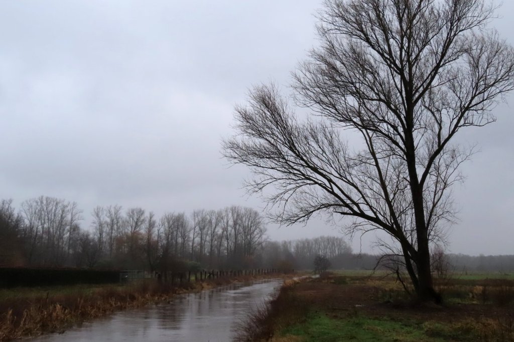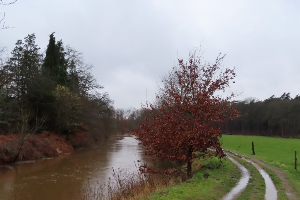 Niet echt mooi wandelweer vandaag, met regen en wind, maar ik heb toch vastgehouden aan mijn “no bus” politiek. Ook in het land van Nete en Aa staat het water vrij hoog maar, gezien de situatie in de IJzervallei, niet zo hoog als ik verwachtte.