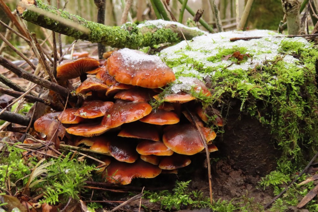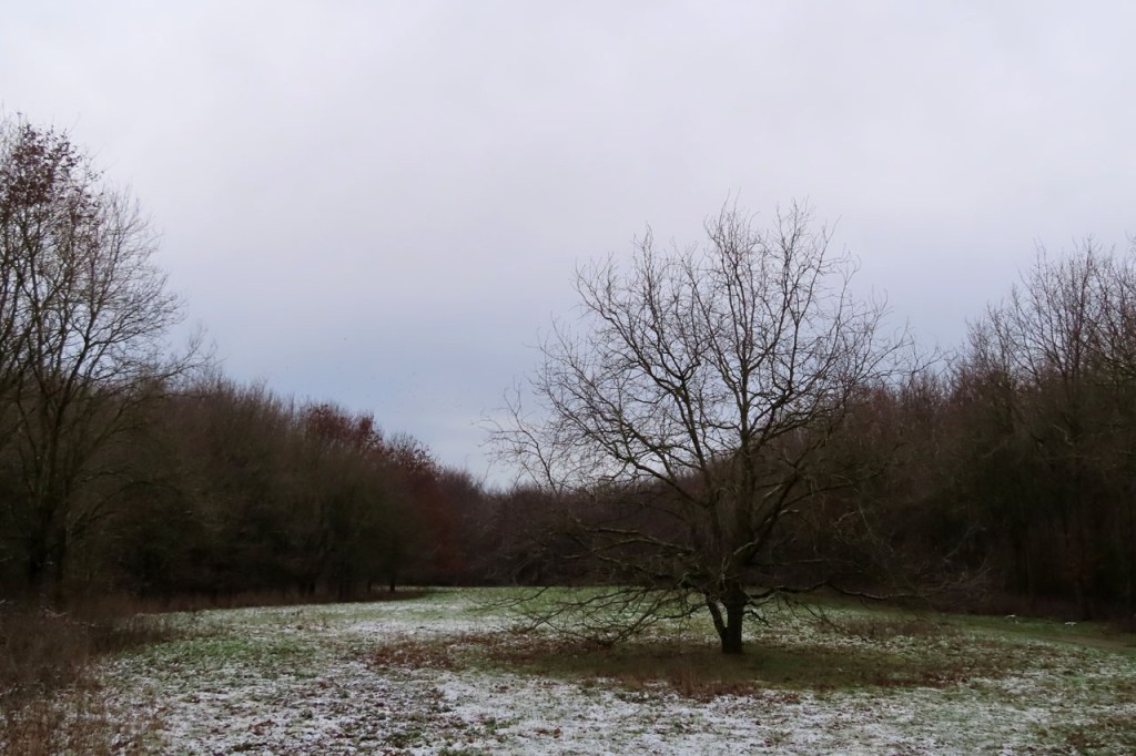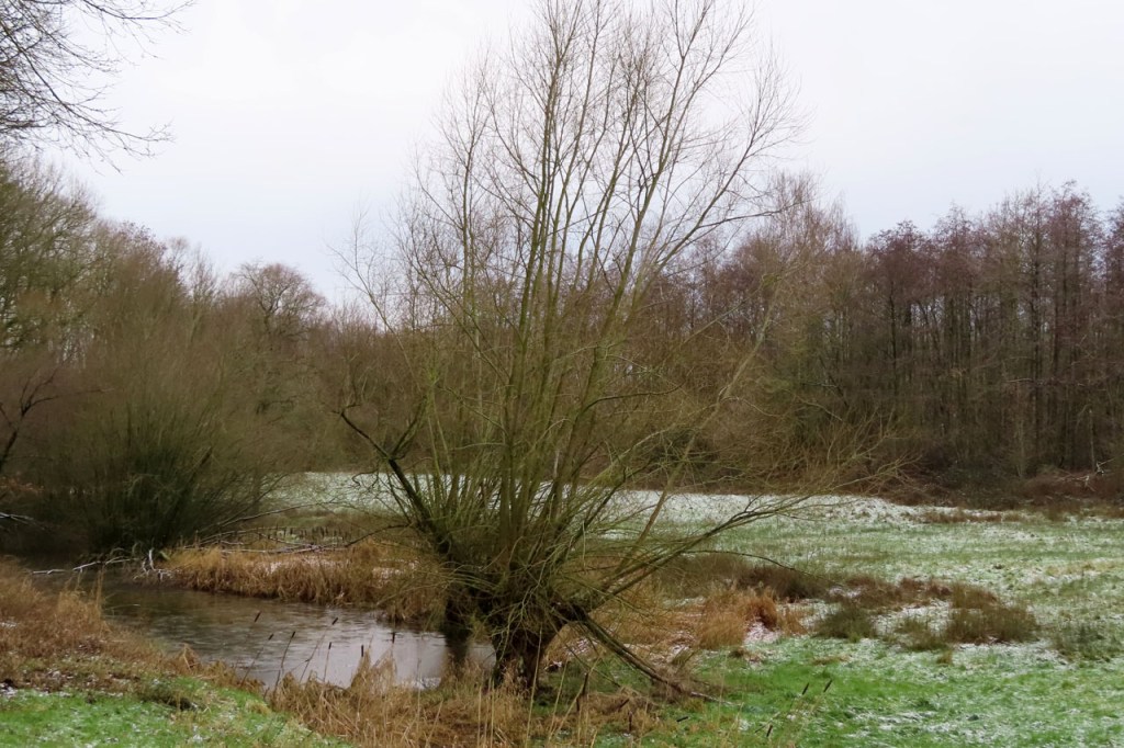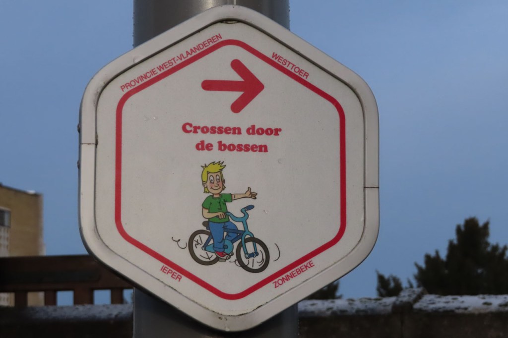Crossen door de bossen is, met 29 Km, een fietsroute op kindermaat. Ik ben de bordjes ervan al dikwijls tegengekomen en was er wel wat nieuwsgierig naar maar 29 Km is me toch wat weinig om te fietsen, ik besliste dan maar om er eens een extra stevige wandeling van te maken. Uiteindelijk zou het parcours vanalles doen behalve crossen door de bossen, alleen de passage door de Palingbeek voldeed even aan die beschrijving. Het was wel een mooi parcoursje maar ik zou er niet met een kinderfietsje aan beginnen, het gaat hier en daar toch even behoorlijk op en af. Ik begon er vanmorgen goed op tijd aan, enerzijds vanwege de afstand maar ook om dan onderweg even een picknick pauze in te lassen. Het was zo vroeg wel erg voorzichtig wandelen, het was op veel plaatsen toch echt wel glad. Ik kwam nochtans al behoorlijk wat fietsers tegen. Ik zou het niet gedurfd hebben denk ik, vooral het eerste uur niet maar ook daarna was het hier en daar nog enigszins delicaat. Bij het verlaten van Zonnebeke, na goed 10 Km, nam ik mijn picknick. Ik had daarvoor een thermos soep mee, ideaal in de omstandigheden: warm, voedzaam en vloeibaar. Nog eens 10 Km verder, bij Hill 62, nam ik nog een kleine pauze voor een snackje. Dit is waarschijnlijk de langste afstand die ik ooit wandelde al was er ook wel eens een tijd dat ik die afstanden liep, gewoon als training. Mijn timing was vandaag wel perfect, net na thuiskomst begon het lichtjes te sneeuwen.