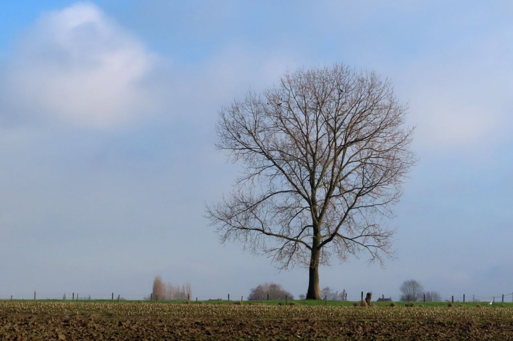 De winter zit er, voorlopig, alweer op. Aangezien de veld- en boswegen eerder al behoorlijk verzadigd waren en er nu ook nog een laagje sneeuw op gesmolten is, koos ik vandaag toch maar voor verharde wegen. Na 2 wat grotere wandeling mocht het ook weer een keer wat minder zijn.