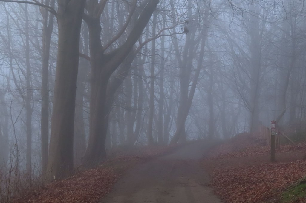 Vanmorgen heb ik lang gedacht om nog eens een sport ritje te maken, op deze zwaar bewolkte maar wel droge dag. Toen het tegen de middag wat ging miezeren keerde ik daar toch van terug en besloot ik van te wandelen. Er zou na de middag wel niet veel nattigheid meer vallen maar er stond wel nog een snedig windje dat het erg onaangenaam fietsen zou gemaakt hebben. Officieel was het vandaag een stuk zachter maar in praktijk vond ik het dus toch minder aangenaam, toch tot dat ik gisteren in de mist terecht kwam.