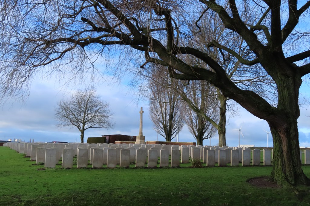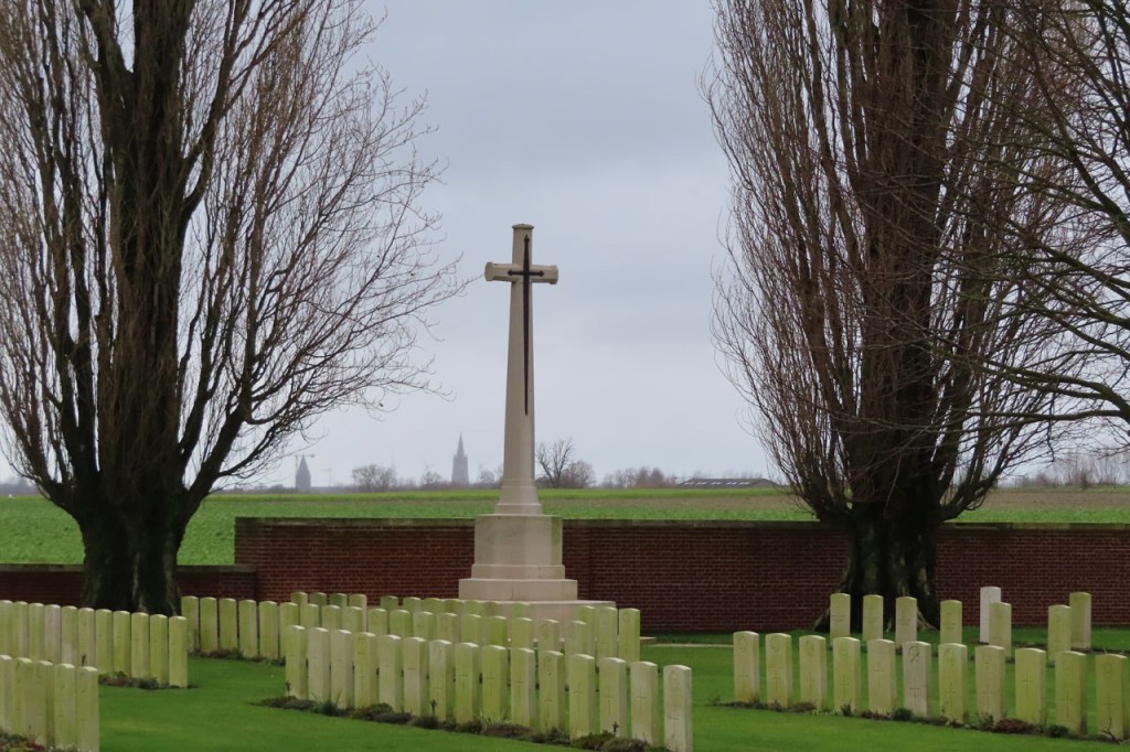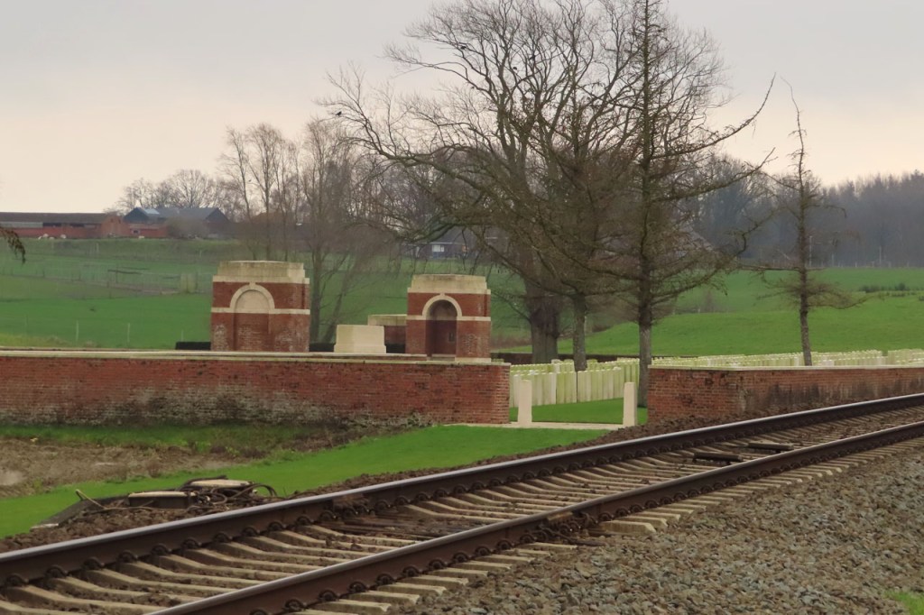 De wandeling ging vandaag richting Palingbeek, een wandeling die op termijn misschien niet meer mogelijk zal zijn. Infrabel heeft plannen om een aantal kleinere overwegen te sluiten en deze die ik op deze wandeling gebruik zou daar bij zijn. De overweg wordt vooral door fietsers en wandelaars gebruikt, hij maakt ook deel van een GR-route, maar ook door een enkel boer om zijn veld te bereiken en door de CWGC (Commonwealth War Graves Commission) voor het onderhoud van de nabije begraafplaats. Misschien dat die laatsten wel voor de “redding” van de overweg kunnen zorgen. Er zou voor hen schijnbaar wel een alternatieve route zijn maar in praktijk heb ik die nog niet opgemerkt.