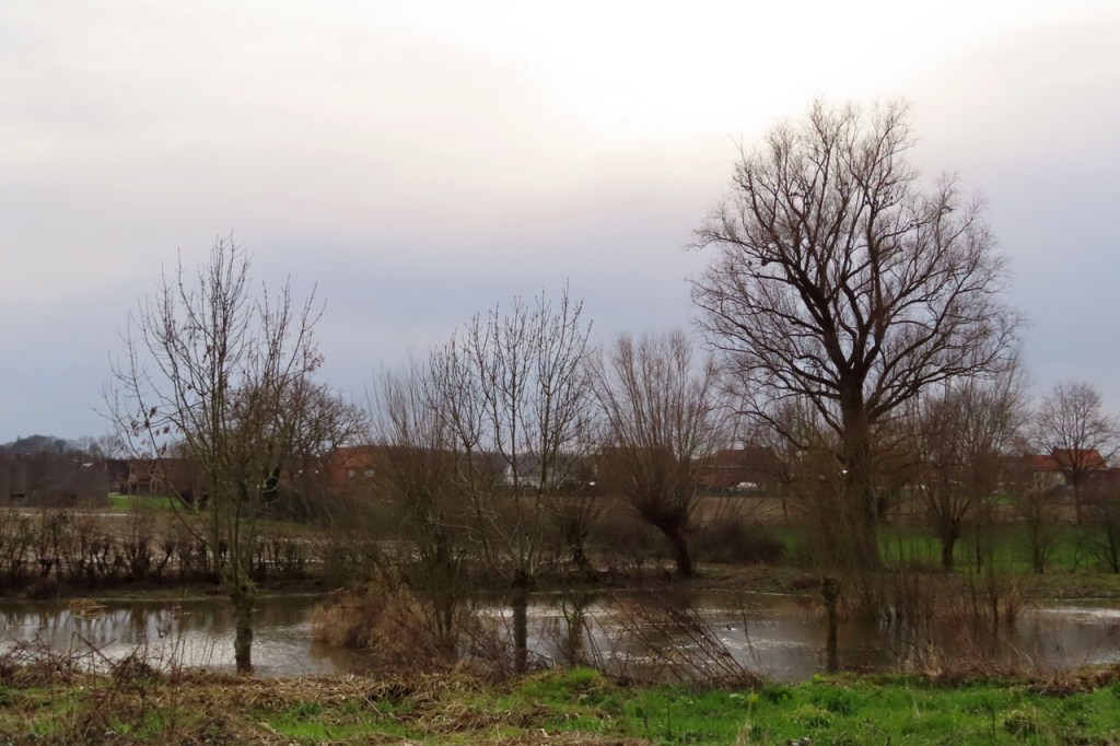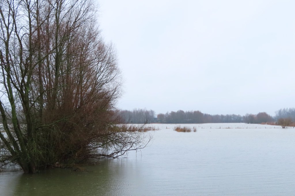 De Verdronken Weide is momenteel eigenlijk niet de aangewezen plaats om te wandelen. Ik wist dat al op voorhand voor de overkant van de weide maar ondertussen blijkt ook deze kant behoorlijk verzadigd te zijn. Anderzijds staat er op de moment wel erg veel water in de weide wat het toch weer enigszins bijzonder en dus de moeite maakt om er eens te passeren. Overigens staat ook in de vesten het water erg hoog en is het op de vestingen ook niet overal even aangenaam wandelen.