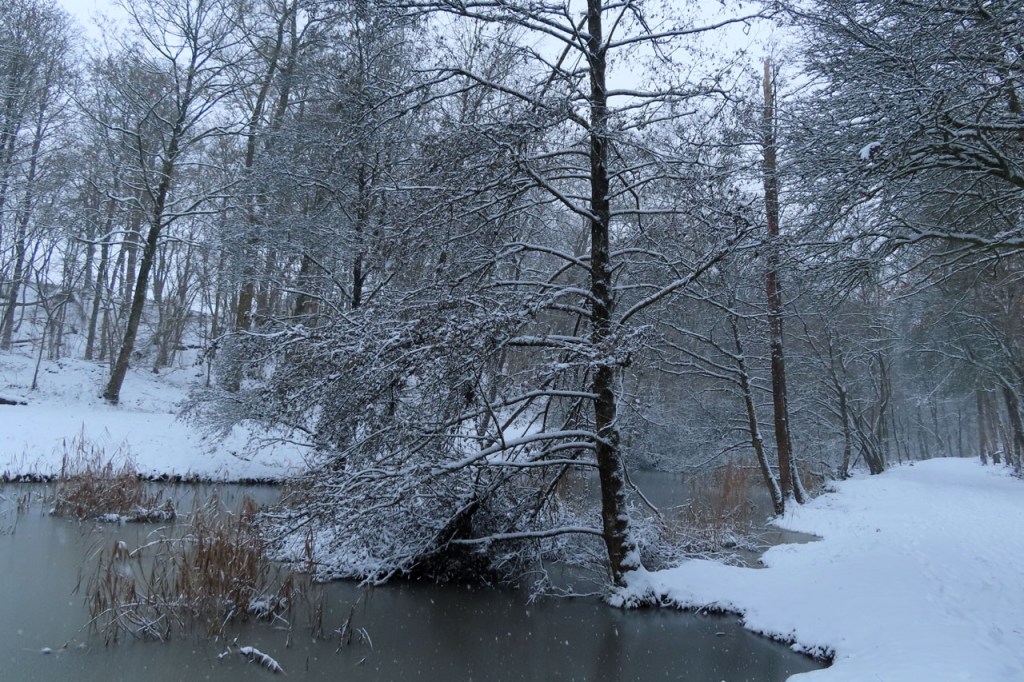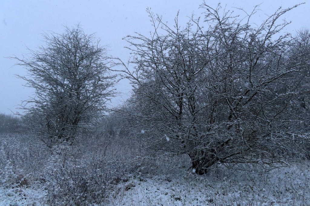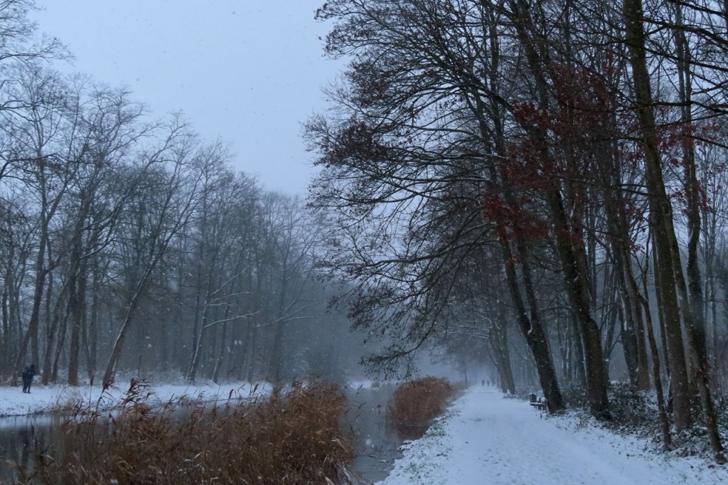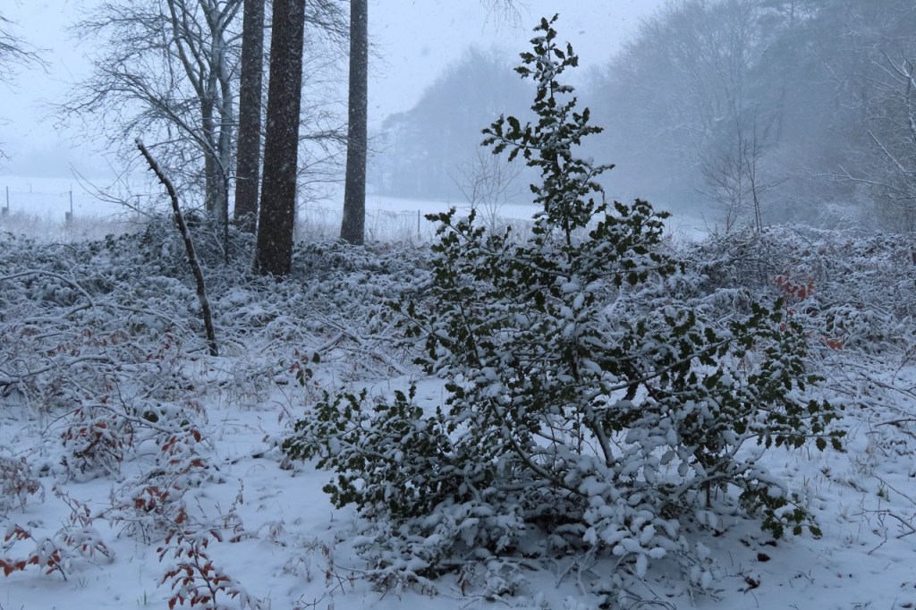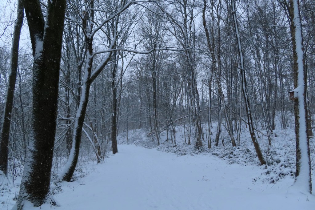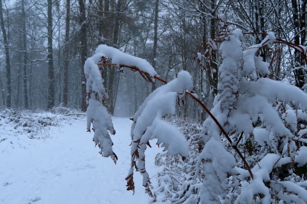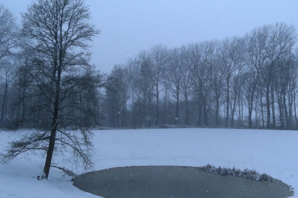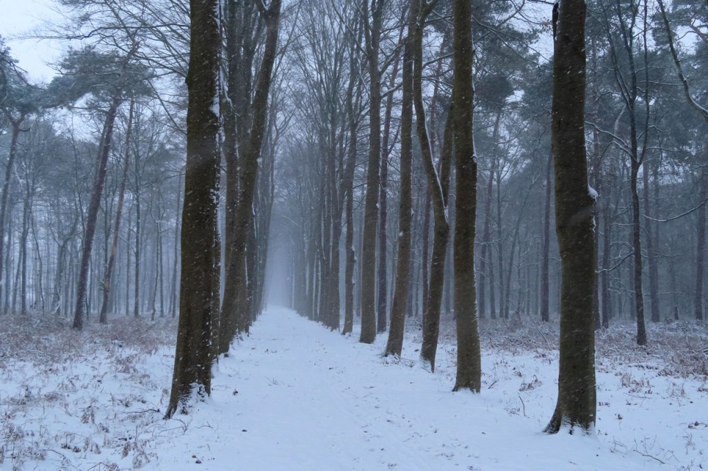 Vandaag een stevige winterwandeling gemaakt. De sneeuwval stelde eigenlijk niet echt veel voor, het was eerder “motsneeuw” dan echte vlokken, maar hij werd wel stevig aangedreven door een snedige wind, wat het toch echt winters maakte. Dat is dus wat men bedoeld met gevoelstemperatuur: de officiële temperatuur zal vandaag waarschijnlijk weinig verschild hebben van gisteren maar terwijl het gisteren met windstilte best aangenaam was, dan was het vandaag eerder arctisch. In de bossen was het ook vandaag wel beter, daar kwam de wind zo niet door. Daardoor werd de sneeuw ook niet van de bomen geblazen, wat het er extra mooi maakte. Als het lang genoeg duurt blijft er ook bij lichte sneeuwval uiteindelijk wel een stevig laagje liggen. Het zal wel niet lang duren maar het was mooi om nog eens een dagje echt winter te hebben.