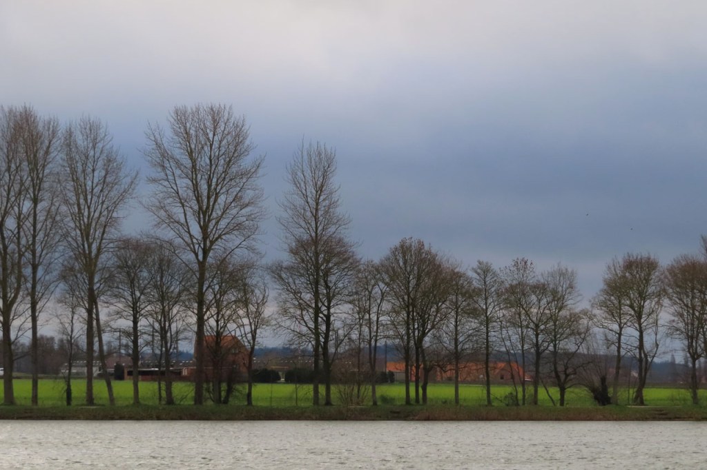 Regen en wind bij het wakker worden vanmorgen maar tegen de middag leek dat allemaal voorbij en dus nam ik toch terug de fiets, wel weer die met dikke banden. De regen bleek dan wel voorbij te zijn maar de wind was nog altijd behoorlijk stevig aanwezig. Later zou trouwens blijken dat ook de regen nog niet helemaal over was, toen ik een buitje over mij heen kreeg.